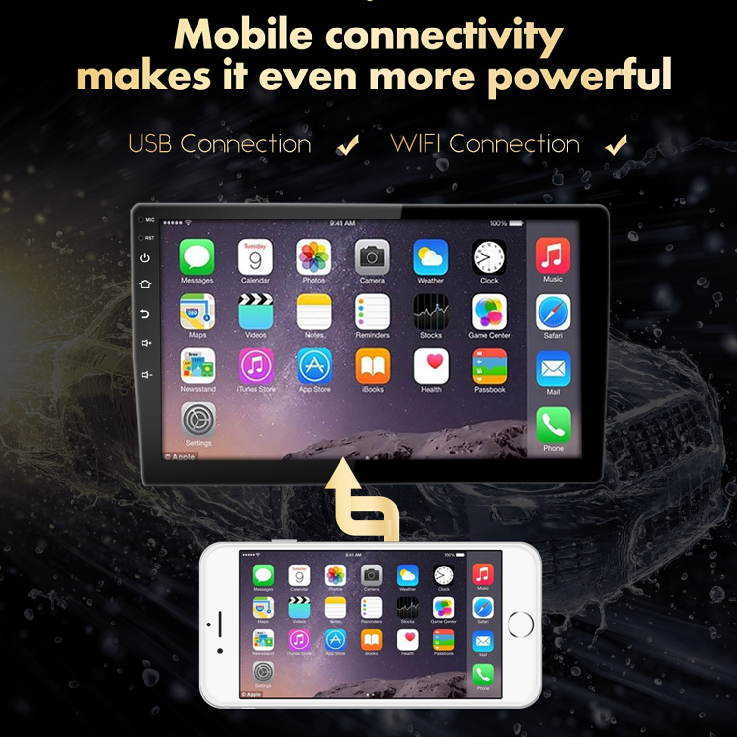 4.Mirror link function:Android MP5 player can mirror link with Android phone by USB cable (IOS phone link by WIFI), you can touch the MP5 screen to operate the Android phone