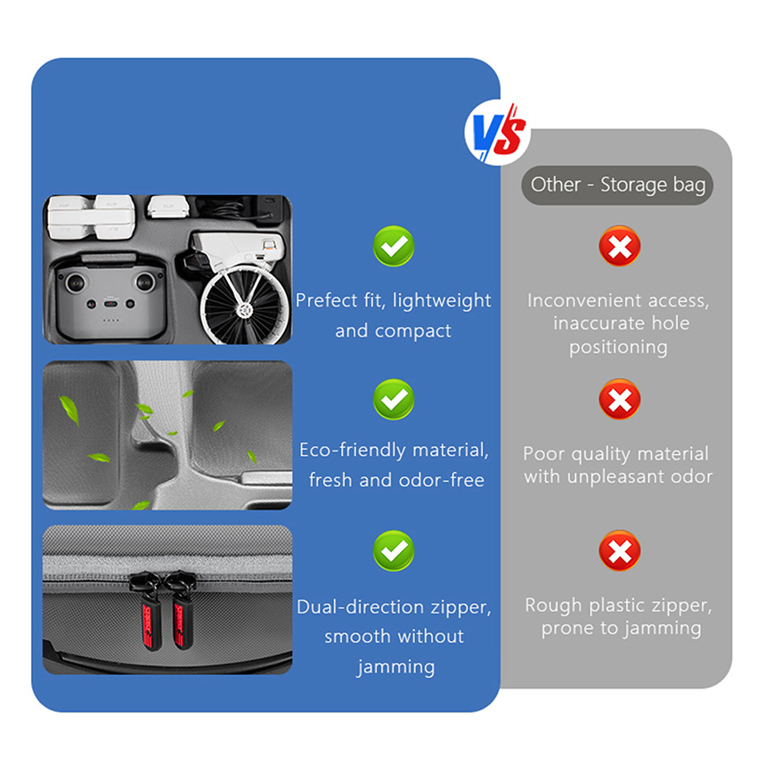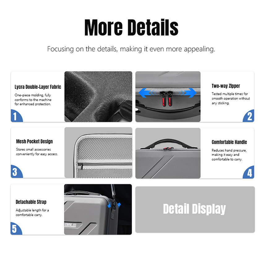 l Made of high quality PU fabric, the outer shell is anti-pressure, wear-resistant and splash-proof, while the inner Lycra double-layer fabric and shock-absorbing lining precisely fit the fuselage and accessories, effectively fixing them, preventing collision and friction, without fear of extrusion, to ensure that it provides long-lasting protection for your FLIP aircraft and related accessories, whether in transport or in the process of storing them