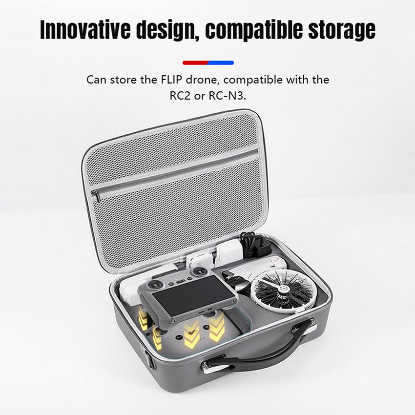 l Specifically designed for DJI FLIP storage bag, precise fit equipment, perfect storage, can store FLIP aircraft, RC2 (compatible with RC-N3), original charging butler with battery, original battery position *2, 65W charging head, comes with custom position under the aircraft, can store data cable, spare paddles, wires, screws, etc., applicable to DJI FLIP smooth flying set of storage