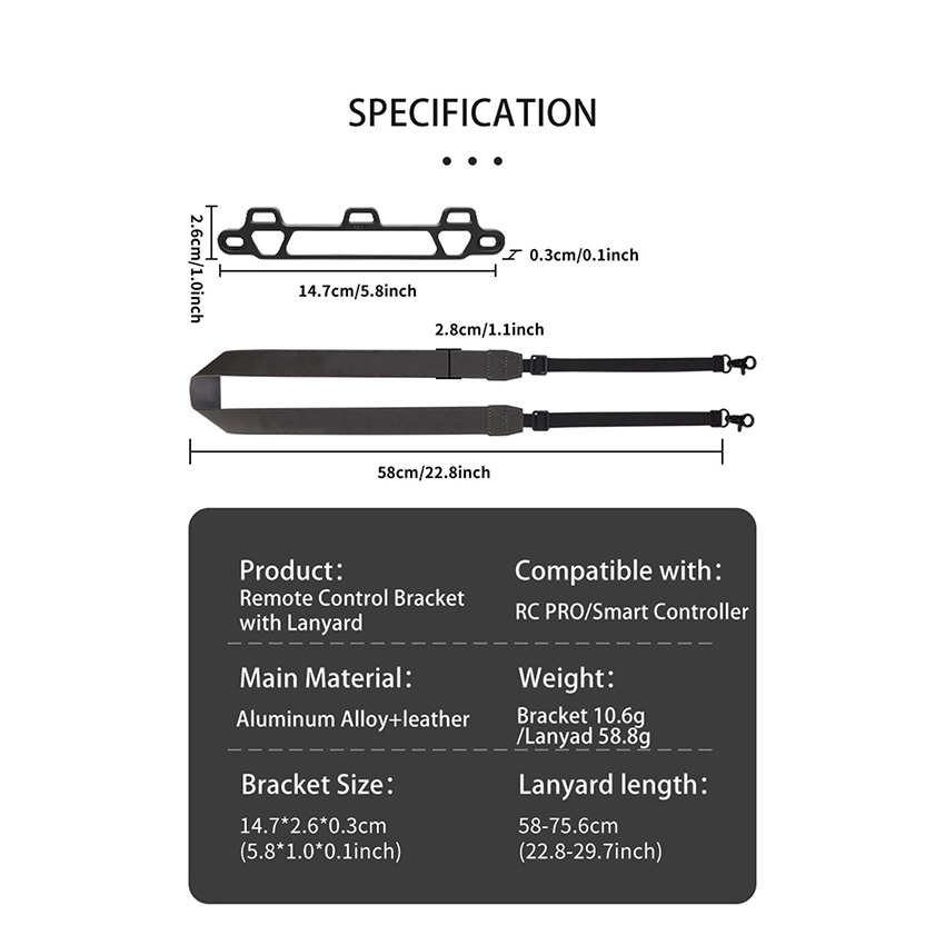 Aluminum Alloy Crossbar Leather Microfiber Lanyard Accessories for DJI RC PRO/Smart Controller