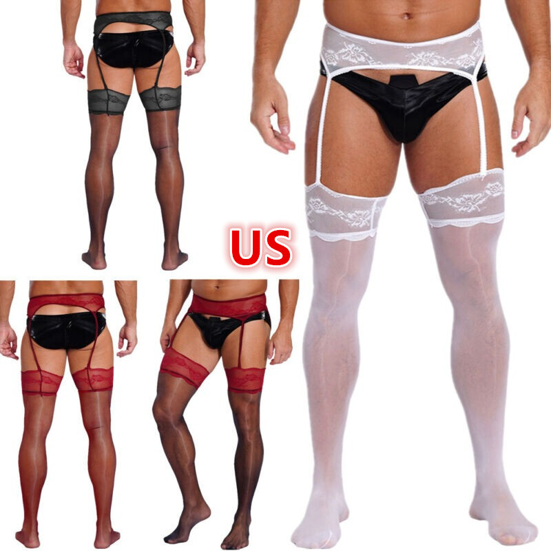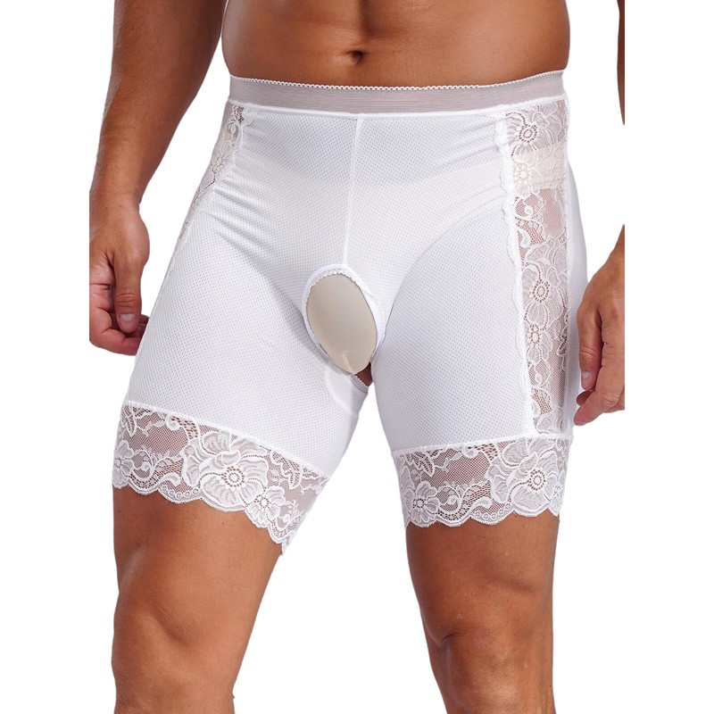 US Men's Sissy Panties Lace Trim High Waist Open Crotch Boy Shorts Boxer Briefs
