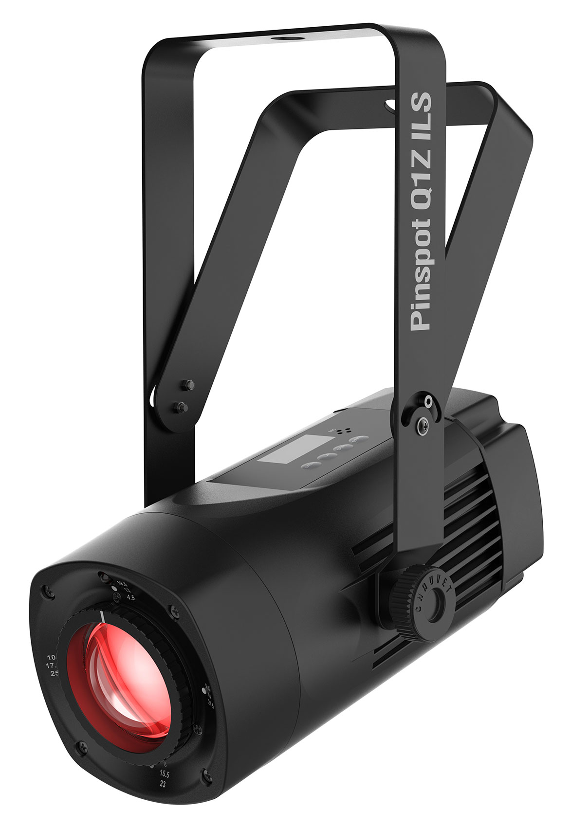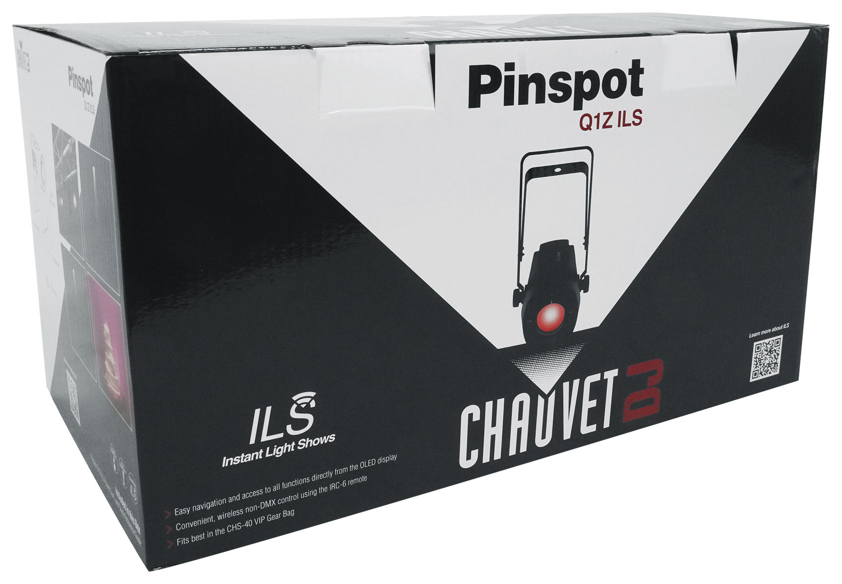 PinSpot Q1Z ILS is a compact 20-watt quad-color (RGBW) LED pinspot fixture with easy menu navigation from the OLED display. ILS compatibility makes creating coordinated light shows with this unit and different fixture types as easy as 1, 2, 3. Its manual zoom brings versatility to both short and long throw applications. Conveniently control this easy-to-use fixture with the IRC-6 remote, or your chosen ILS leader such as the ILS Command.