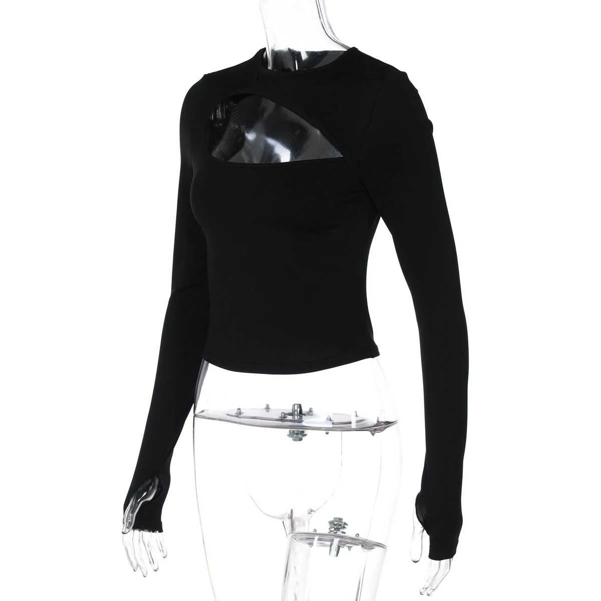 Make a statement in this sexy hollow-out long sleeve top, designed to add a touch of edge to your everyday or night-out look. With its slim fit, bold cut-out details, and stretchy comfort, this top is the perfect blend of casual cool and nightlife-ready flair.