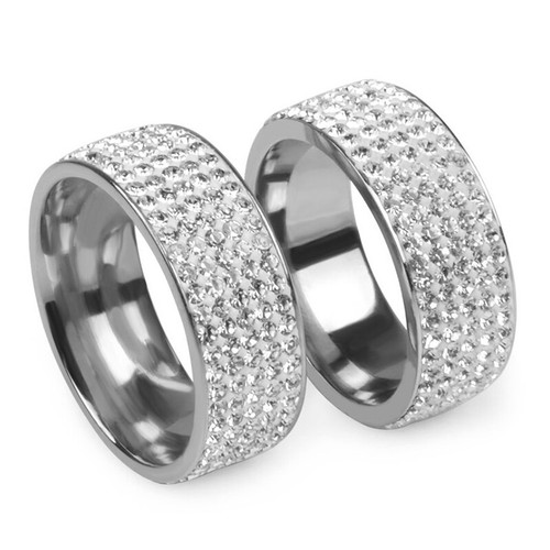 Couple Stainless Steel Gold Silver Crystal Ring Men Women Wedding Band Rings New