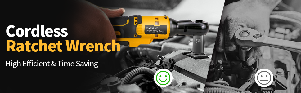 [HIGH PERFORMANCE HIGH TORQUE WRENCH]: The V-MODEST 1/2" Cordless Ratchet Wrench delivers great power with 95 Ft-lbs of torque and 380RPM for removing or installing bolts or nuts. Cordless ratchets allow you to perform mechanical, automotive and home repair jobs effortlessly, making this V-MODEST battery ratchet the ultimate tool for professionals and DIY enthusiasts.
