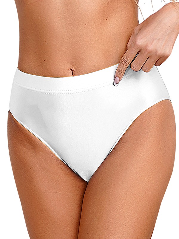 Glossy briefs for women, solid color, elastic waistband for better fit.