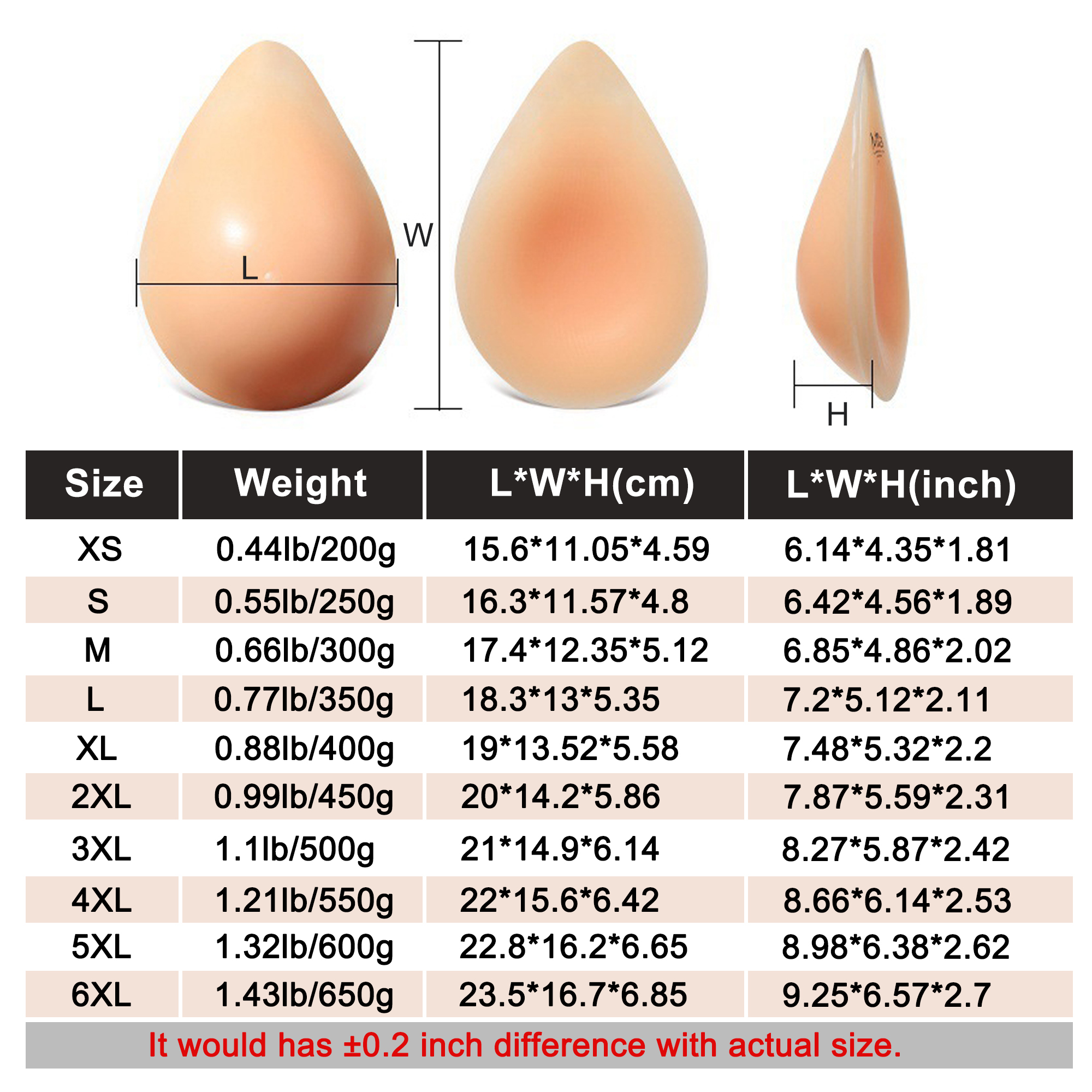 - Size: M Size; Weight: 650g/piece. Package included: only ONE Piece breast form.(NOT include the bra)