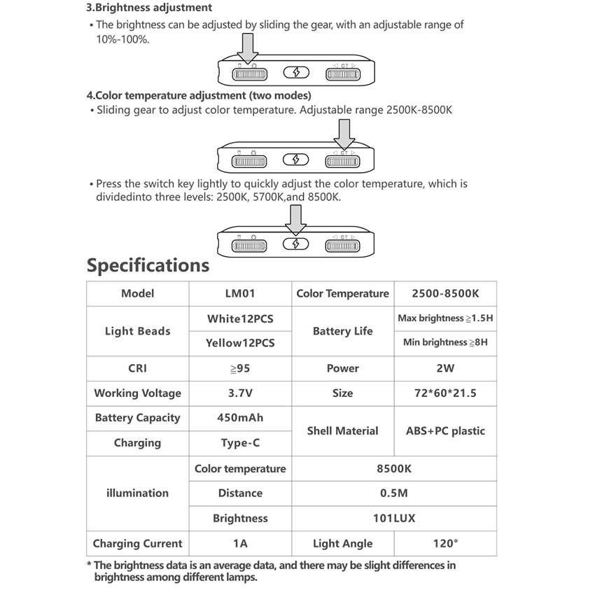 l Warm and cold soft light Quick adjustment, easy to use Quickly adjust the light Create different lighting atmosphere