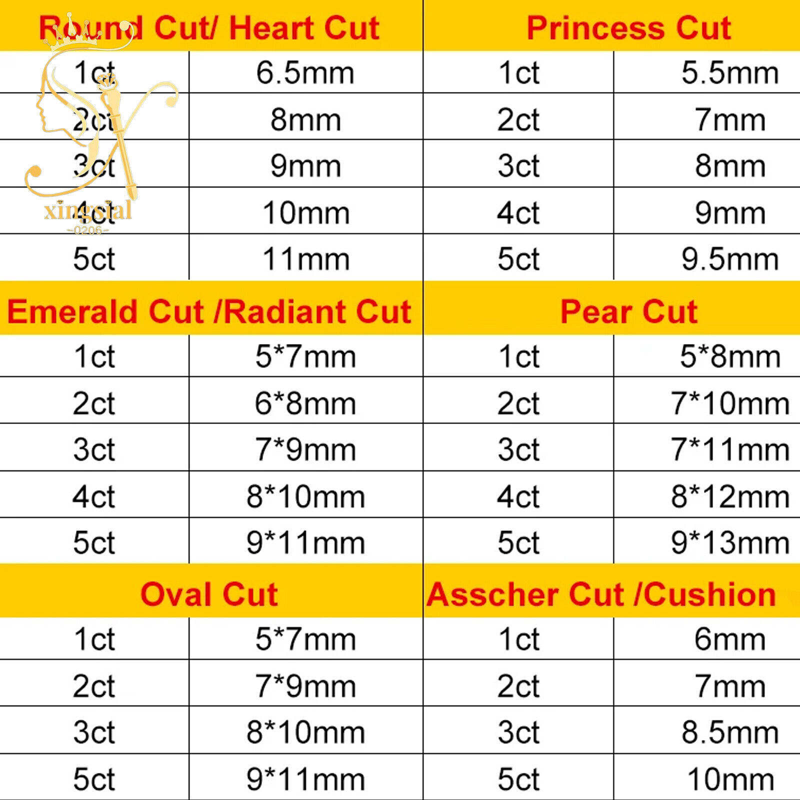 3.Note : Moissanite proportion is slighter, the same size 6.5mm diamond is 1 carat , but moissanite is about 0.88 ct. Our company sell moissanite sizes equal to diamond.