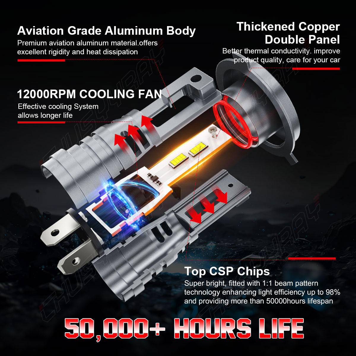 ◆500% Brighter than Halogen: 80W 6000K cool white, with clear visibility and perfect beam pattern, so you can enjoy good vision while driving at night.