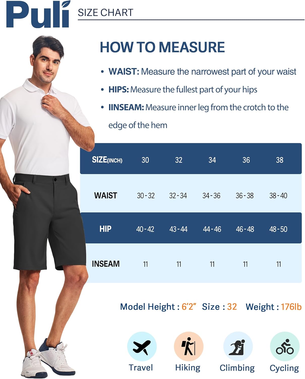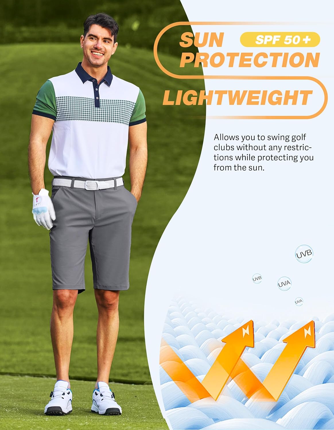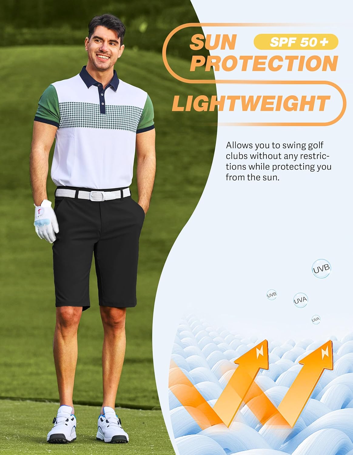 Lightweight & Quick-Drying Fabric - Made with high-performance fabric, these mens golf shorts are ultra-comfortable, breathable, and quick-drying. Featuring UPF 50+ protection, moisture-wicking technology, and durability for all-day comfort on and off the course
