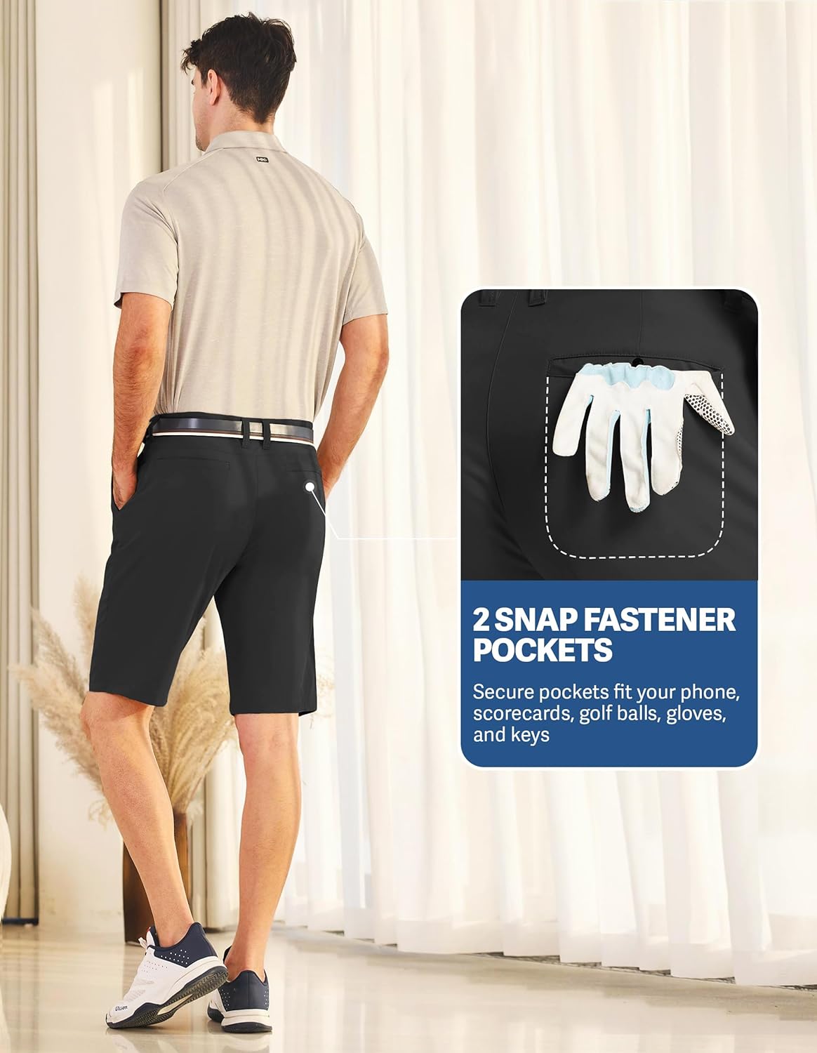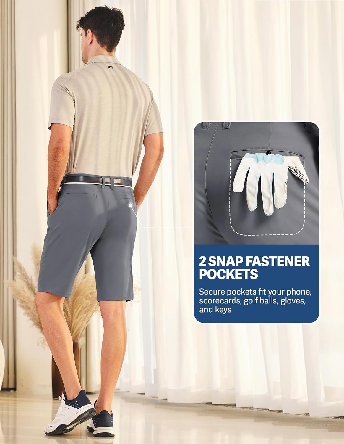 Moisture Wicking - Golf shorts for men have moisture-wicking technology that pulls sweat away from your skin to ensure a fresh feel throughout your round or any outdoor activity