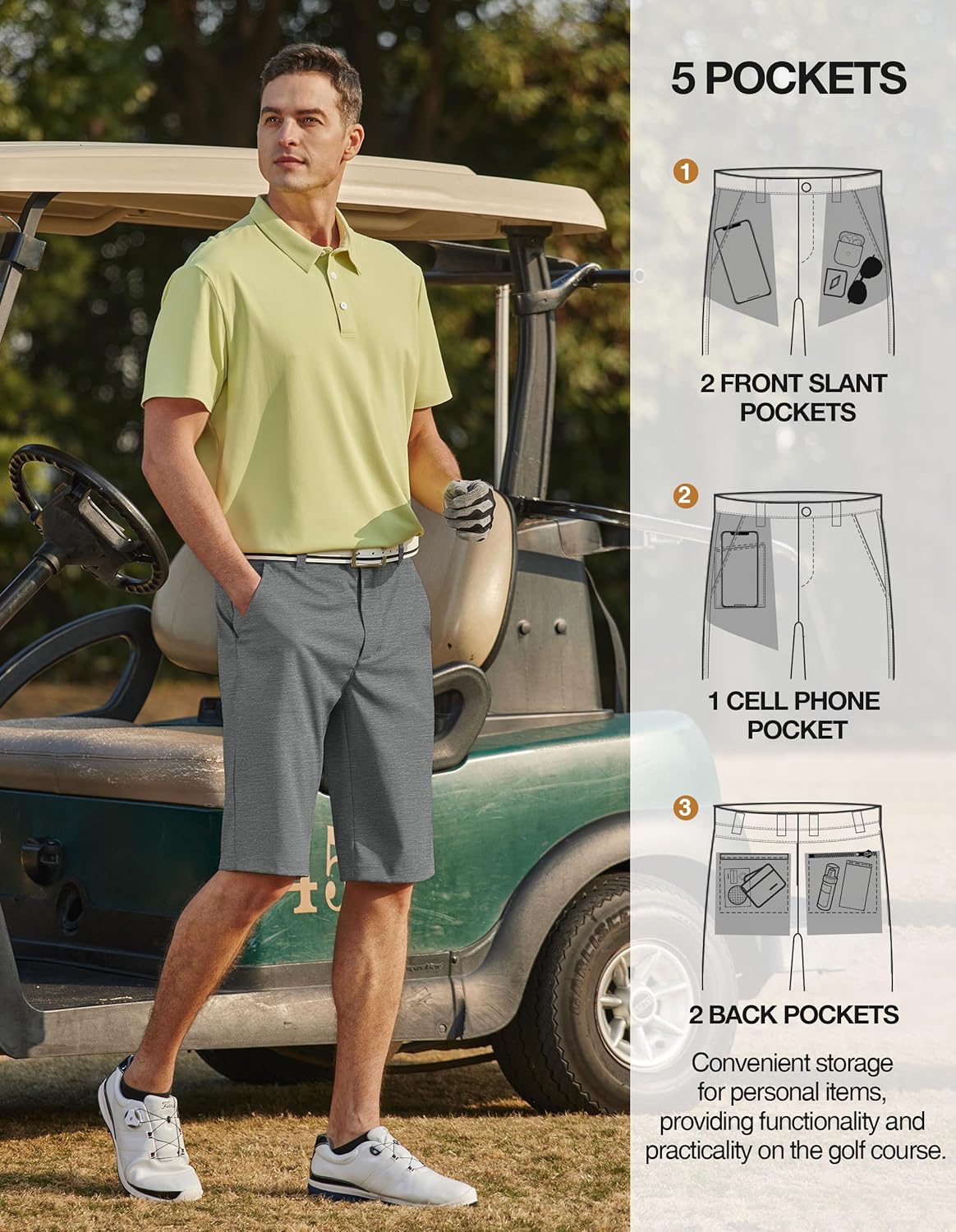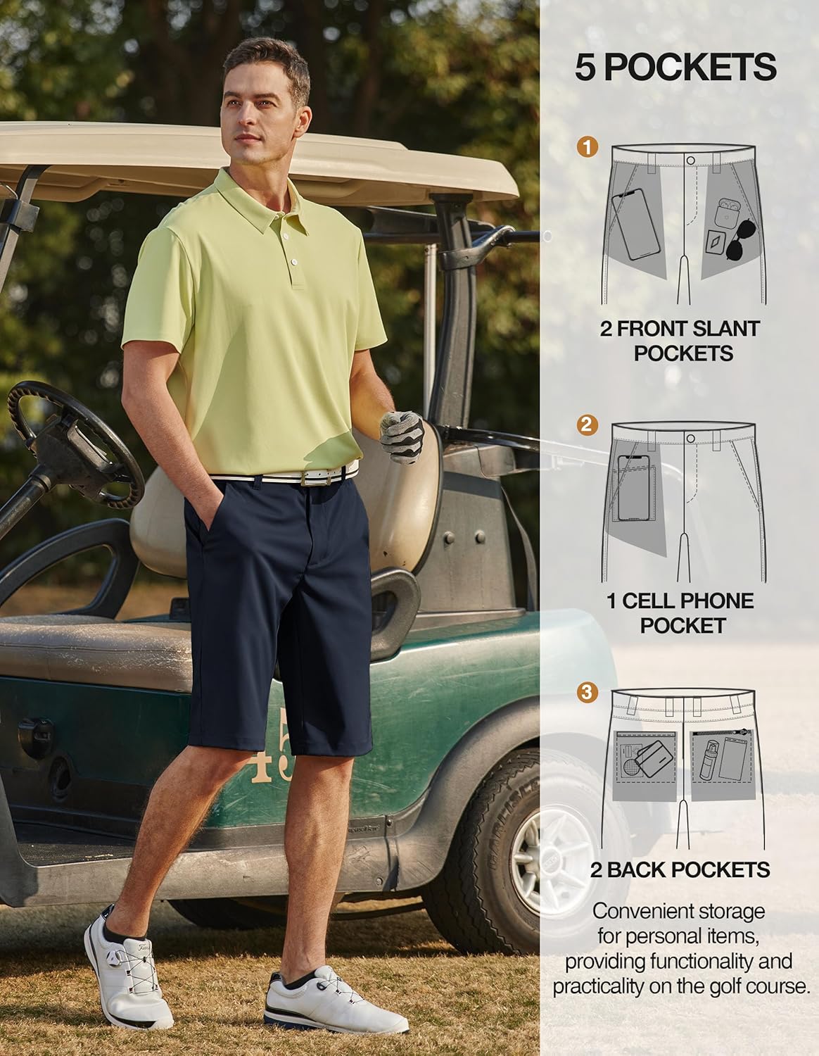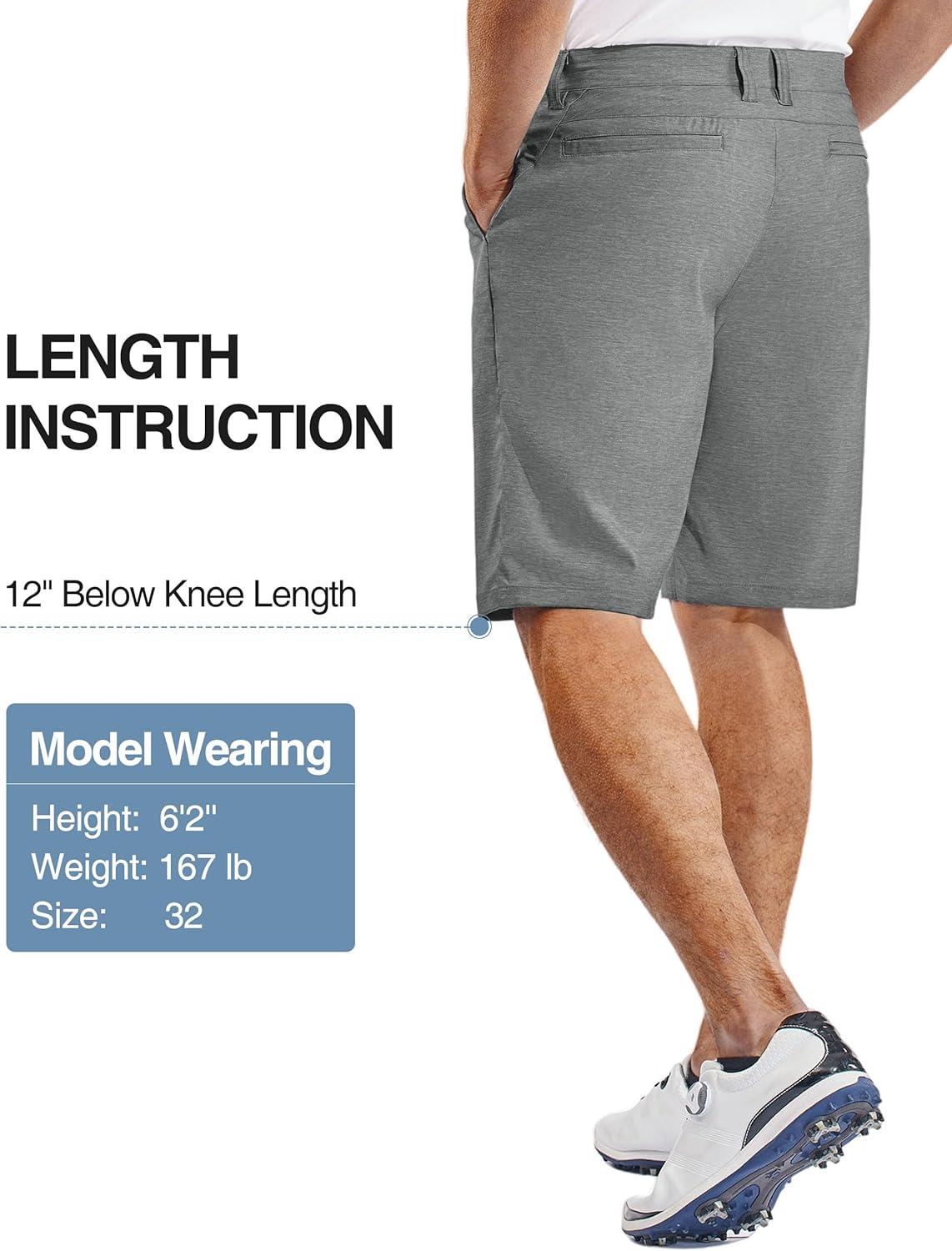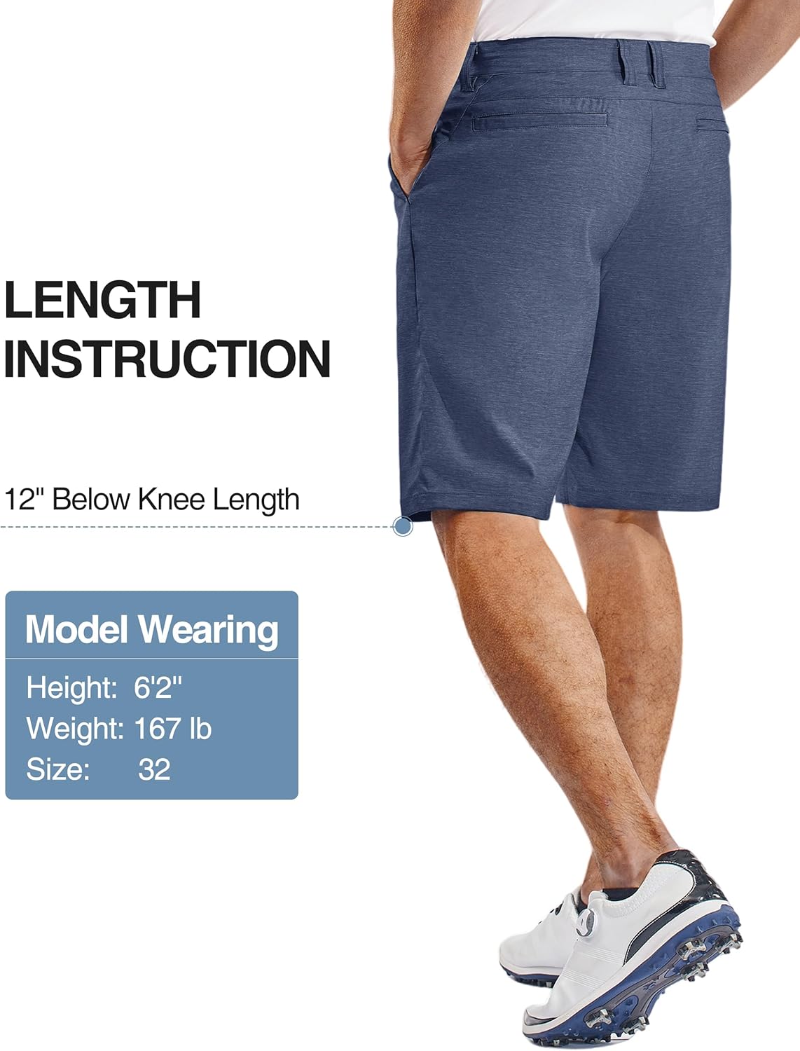 𝟭𝟮-𝗶𝗻𝗰𝗵 𝗶𝗻𝘀𝗲𝗮𝗺--These golf shorts men are designed with practicality in mind. The below knee length strikes a balance between providing coverage and allowing for ease of movement, making them suitable for a wide range of activities.