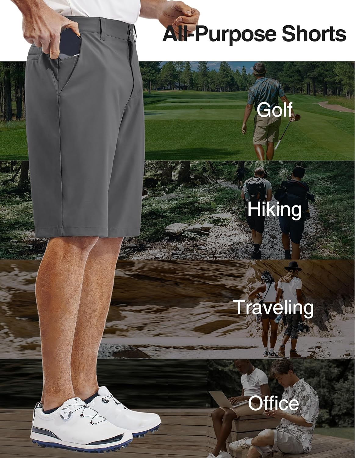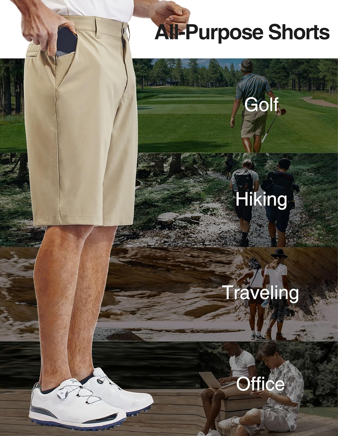 𝗢𝗰𝗰𝗮𝘀𝗶𝗼𝗻𝘀--Mens dress shorts are practical for a variety of situations. They're great for outdoor activities like golf, hiking, picnics, beach outings, casual, or gardening, where mobility and comfort are essential.