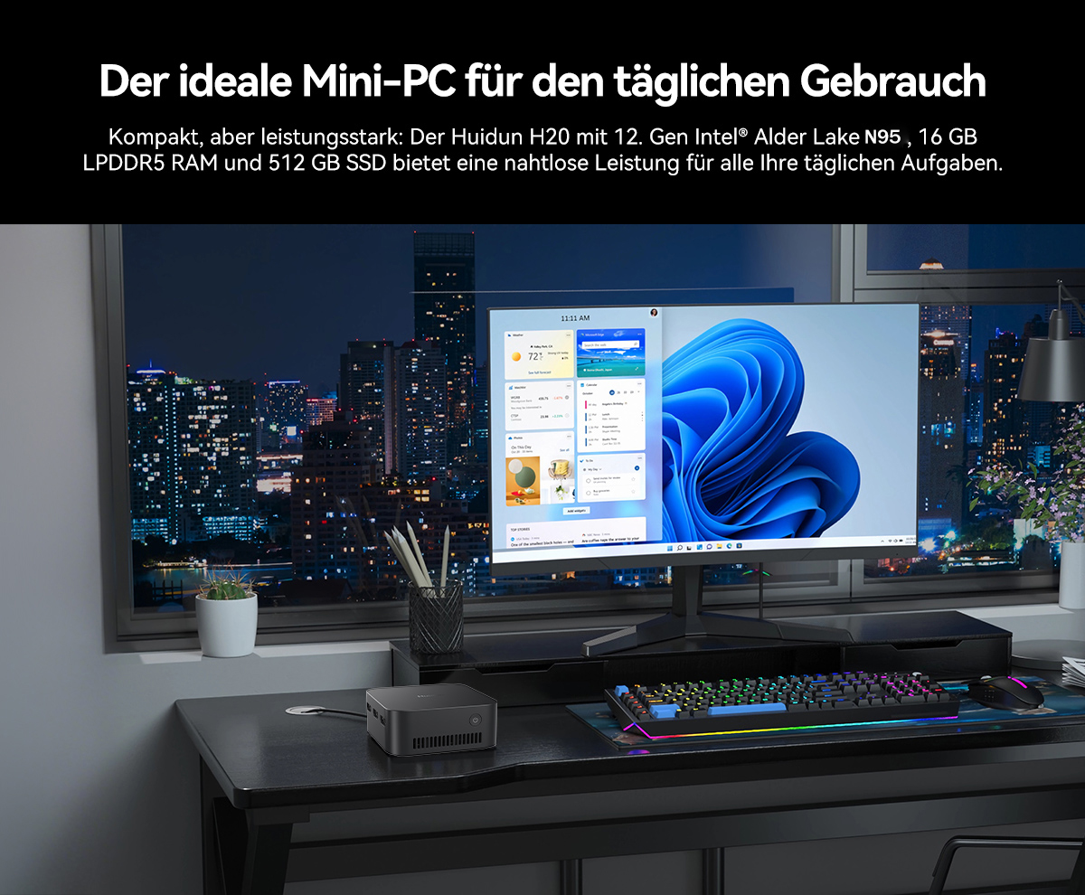 HUIDUN H20 Mini PC - Intel 12th Gen N95 ------ 16GB+512GB