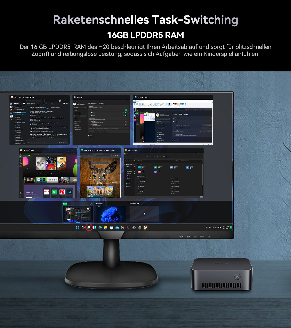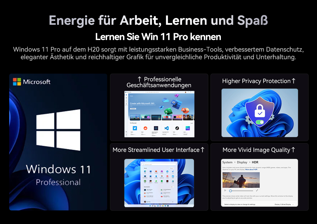 Auf dem Mini-PC H20(N95)-12th ist das Windows 11 Pro-System vorinstalliert. Wenn Sie technische Unterstützung benötigen, wenden Sie sich bitte an uns.