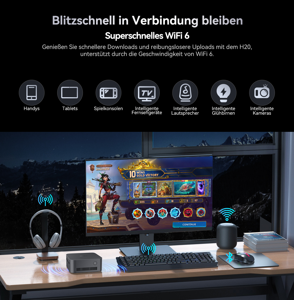| Ja, Huidun H20 kann eine Verbindung zu WIFI 6 herstellen |