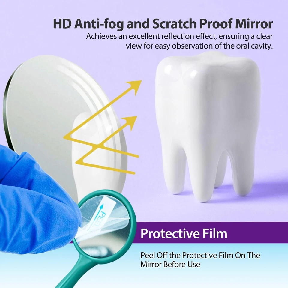Our mouth mirror provides clear and unobstructed views, the light can be reflected to the desired surface, so you can easily see your teeth conditions in each of the corners without the need for repetitive wiping or repositioning, offering convenience and efficiency to you.
