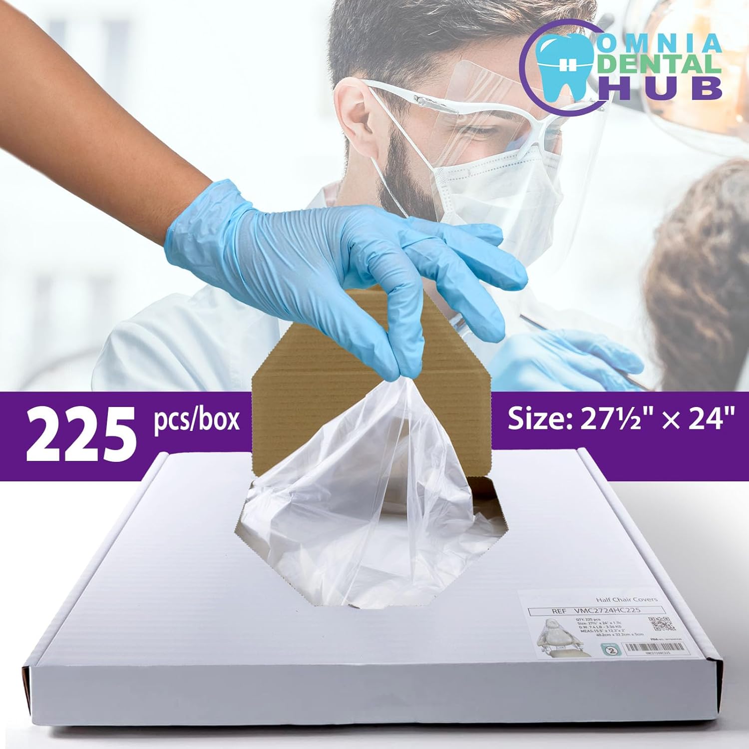 Available in packs of 125, 225, 375 and 675 pieces, these plastic chair covers come in a clear color in two sizes full chair cover and half chair cover that fits all — designed to meet professional medical and dental standards.