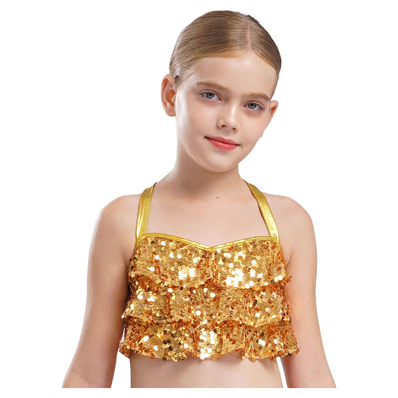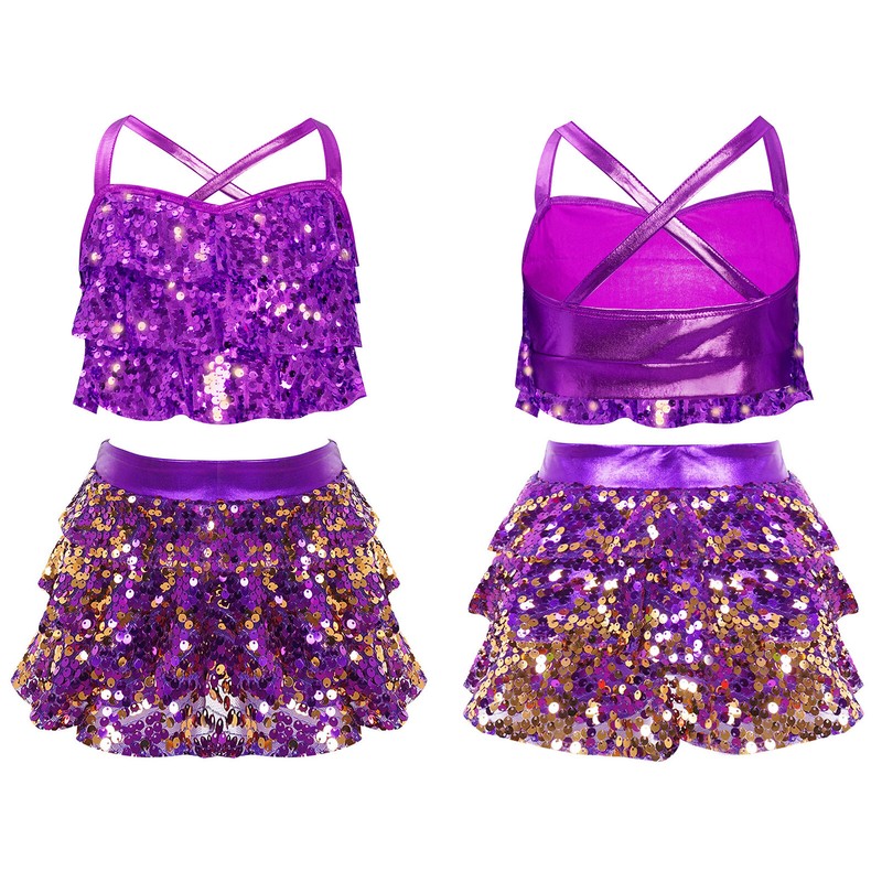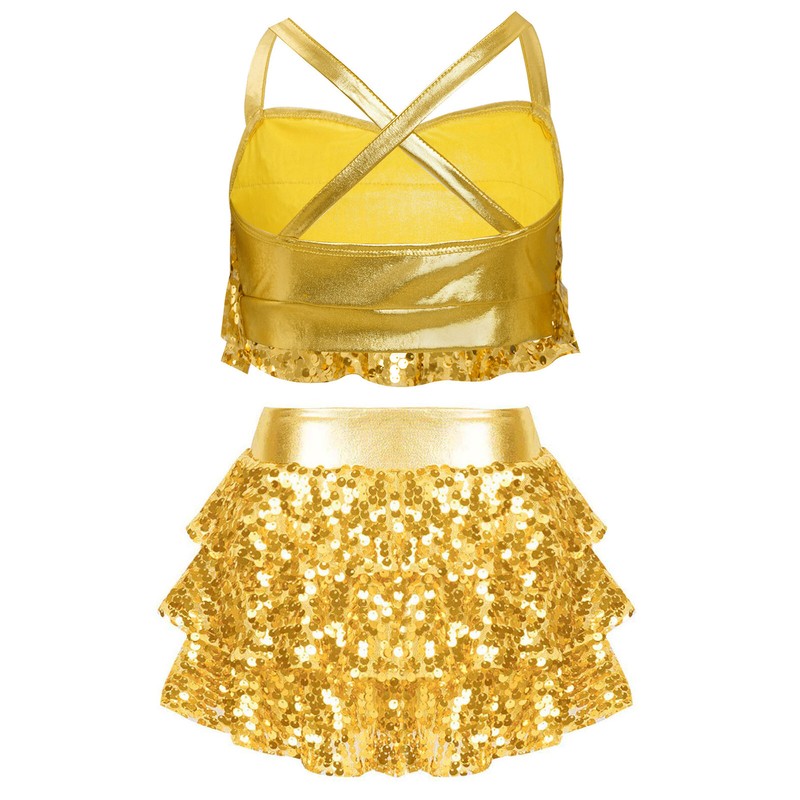 Tiered ruffles with shiny sequins are eye-catching enough to make your child the center of attention in the crowd.