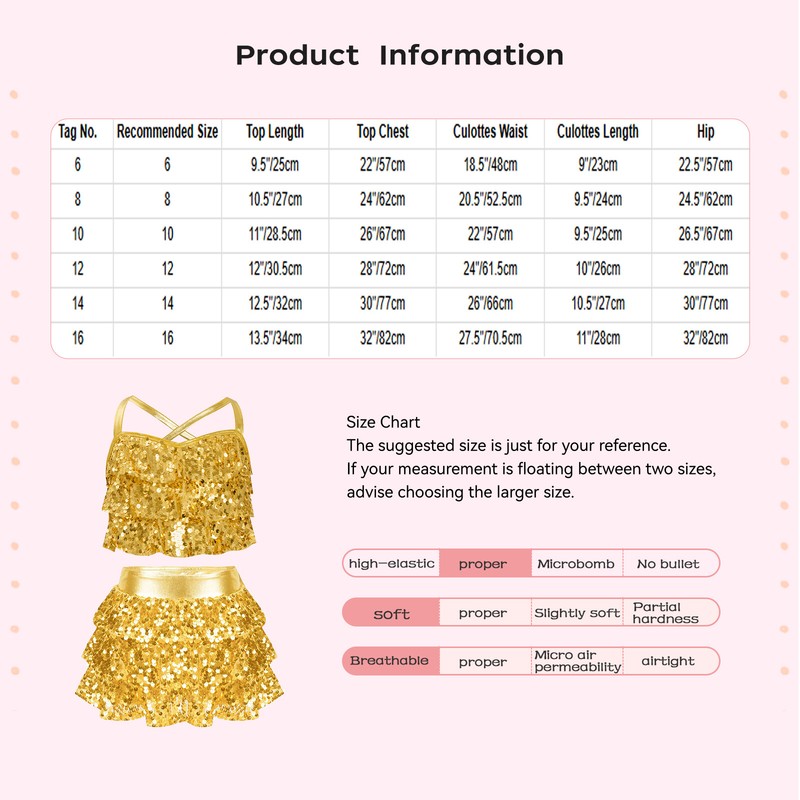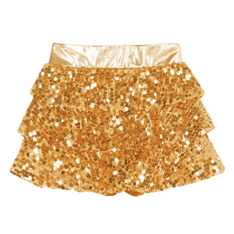 Metallic skirted shorts allow your girls to move freely and enjoy the dance, elastic waistband for a better fit.