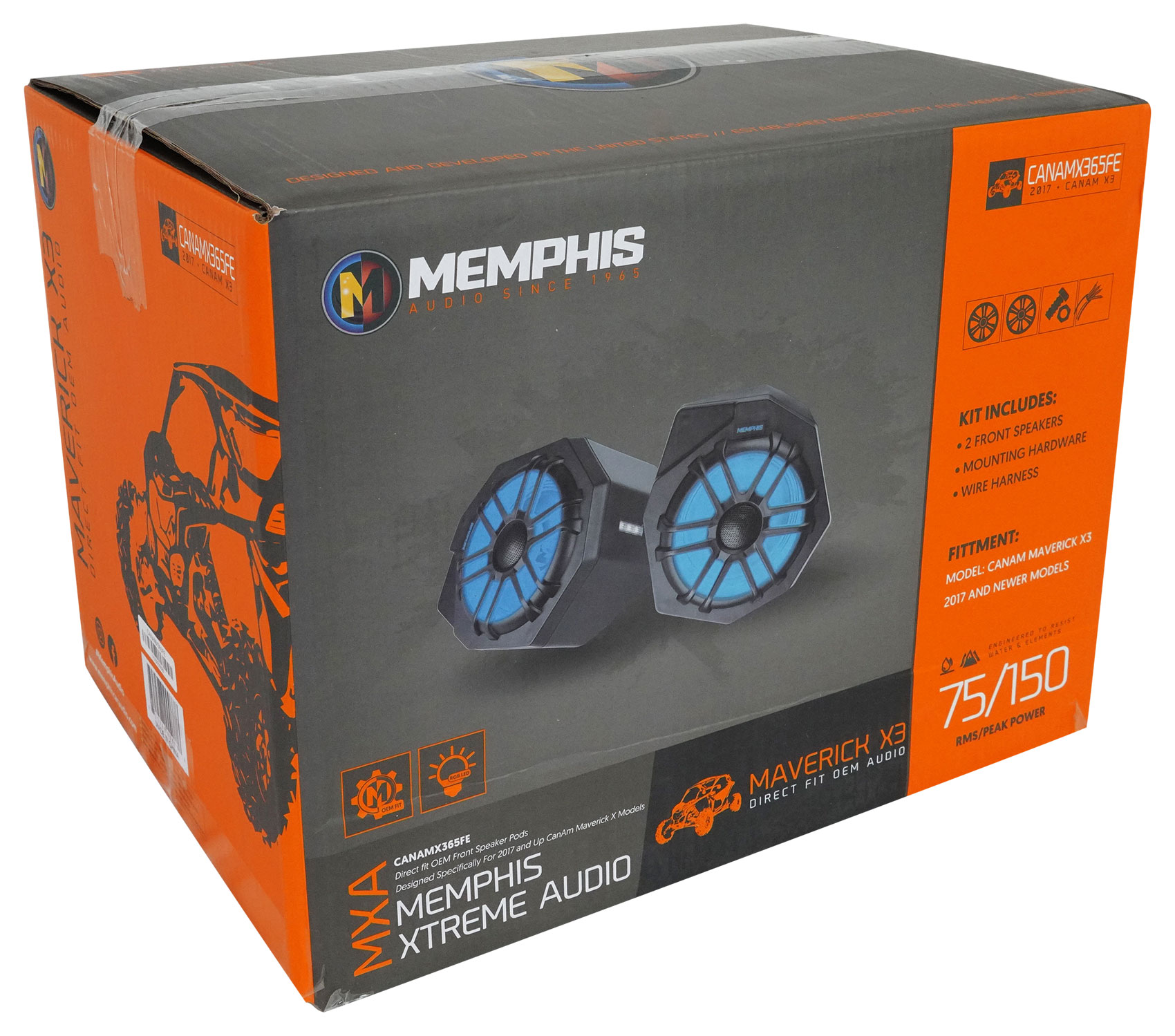 Memphis Audio direct fit OEM speaker pods are designed to fit directly into your vehicle with zero custom fabrication required. Lightweight durable injection molded polypropylene speaker enclosures are tuned for maximum output and feature RGB LED lighting which illuminates the speaker cone, Memphis badge and provides down lighting making your machine stand out from the crowd. All the components used in this kit are marine grade and designed to withstand water and the elements. CanAm X3 speaker pods are the best way to add speakers to your CanAm Maverick X3.