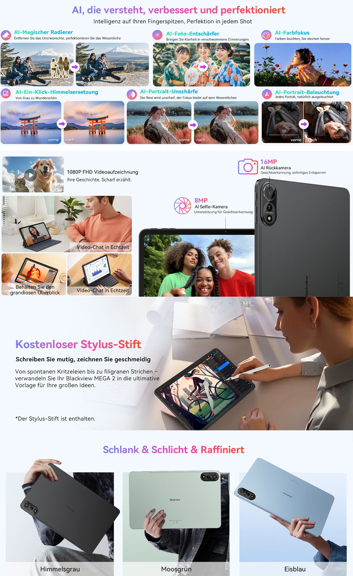 Kamera ----------Vordere Kamera: 8MP Selfie-Kamera,Gesichtserkennung, sofortige Entsperrung