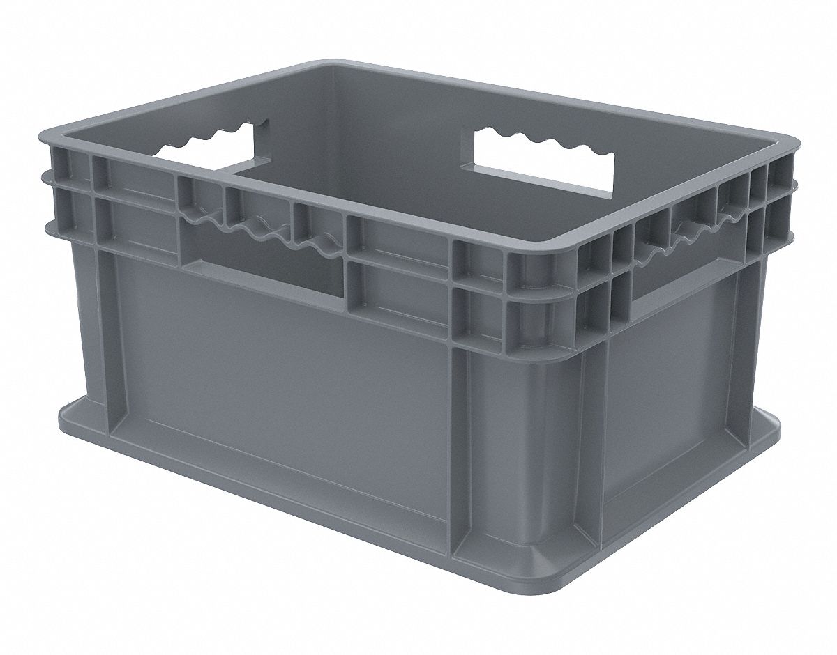 Straight Wall Container, Container Wall Type Solid, Fork Pockets No, Includes Lid No, Material Plastic, Maximum Operating Temperature 140 Degrees F, Minimum Operating Temperature -20 Degrees F, Body Color Gray, Nestable No, Overall Height 8 1/4 in, Overall Length 15 3/4 in, Overall Width 11 3/4 in, Resistant To Alkaline Solutions, Corrosion, Rust, Water, Weak Acids, Stackable Yes, Stacking Capacity 415 lb, Volume Capacity 6.65 gal, Weight Capacity 83 lb, NSF Certified No Package of 4