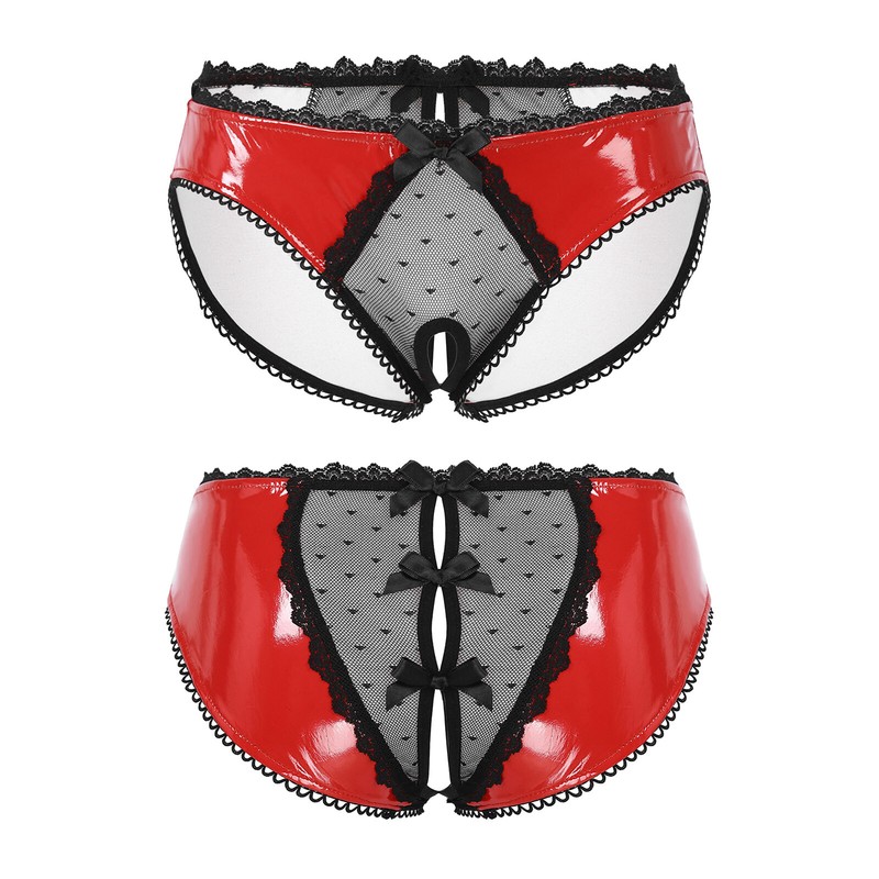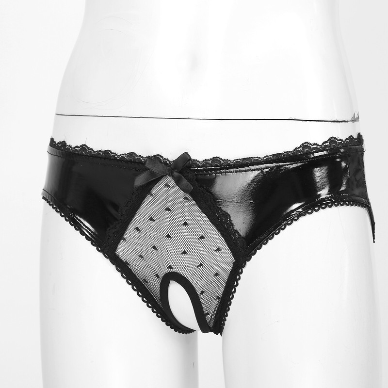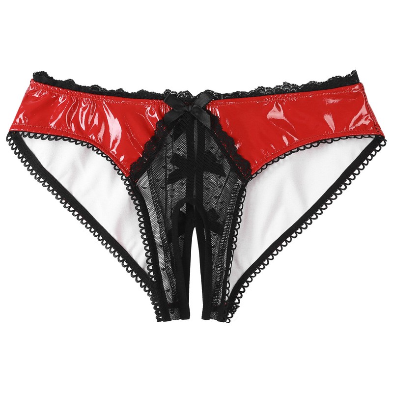 Womens Sheer Lace Patchwork Open Crotch Briefs Bowknot Low Waist Panties.