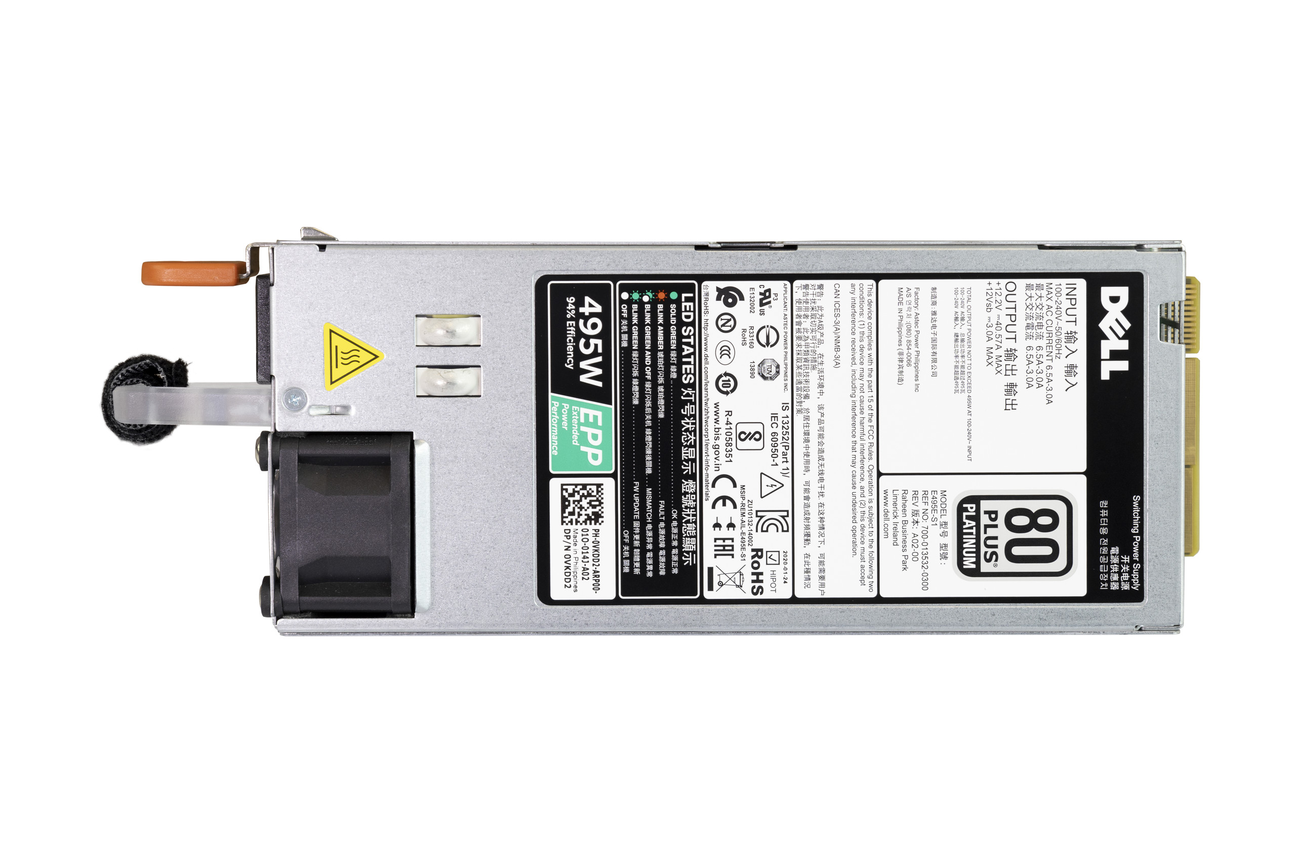 PSU Dell ASTEC G13 495W 100-240V AC 50/60MHz 80+ Platinum VKDD2
