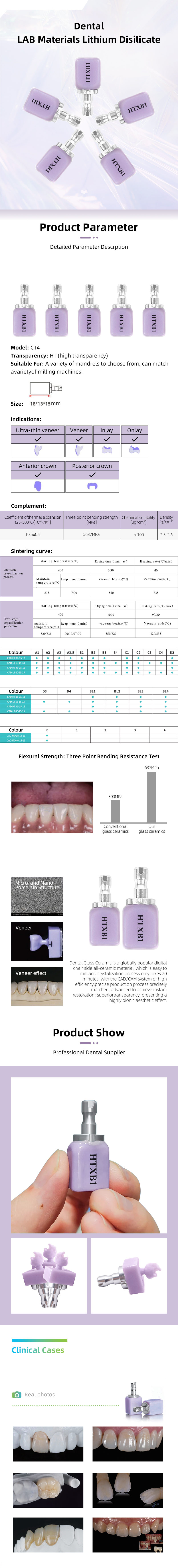 5PCS Dental Emax Glass Ceramic Blocks Lithium Disilicate CAD/CAM CEREC Block C14
