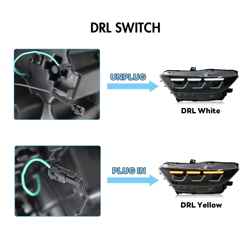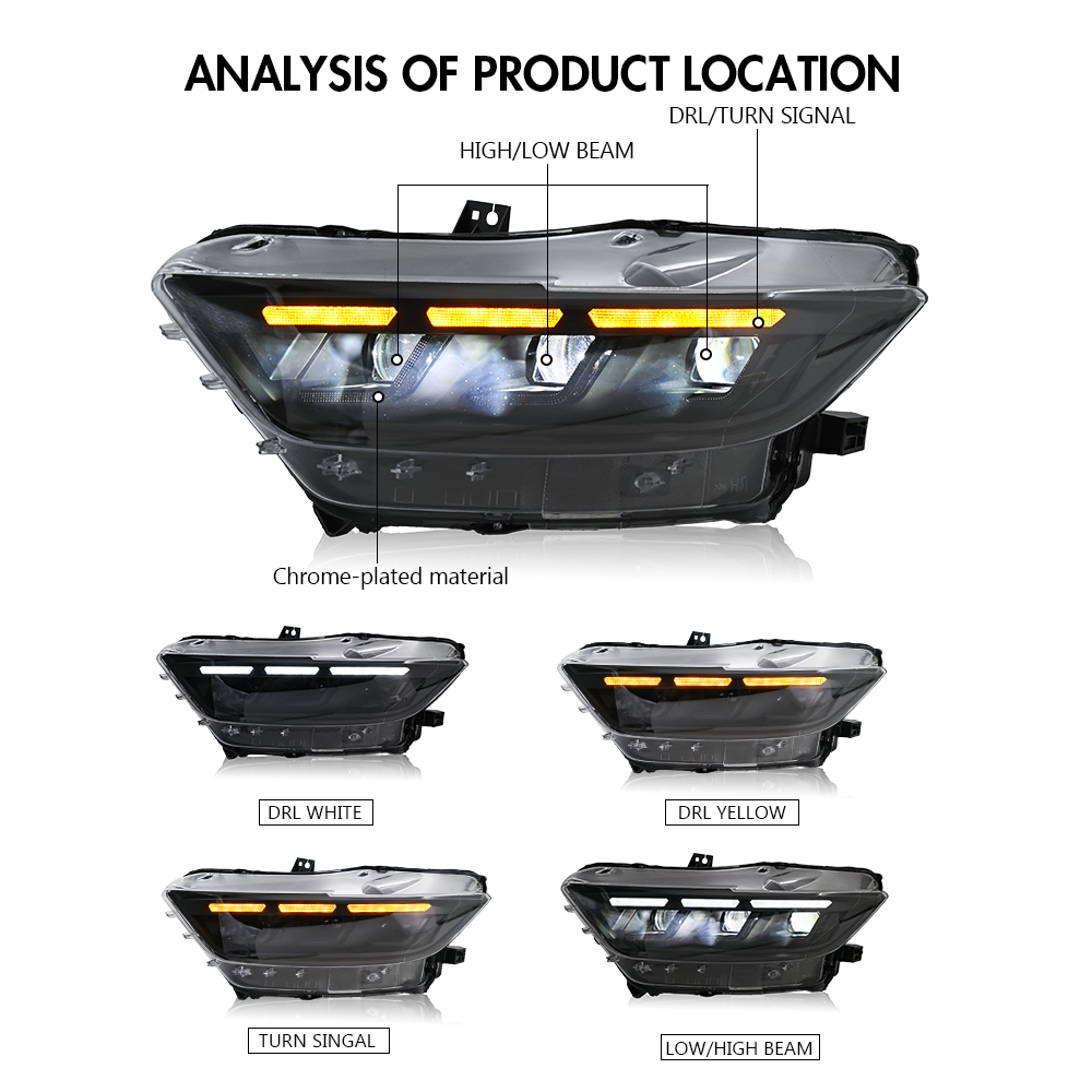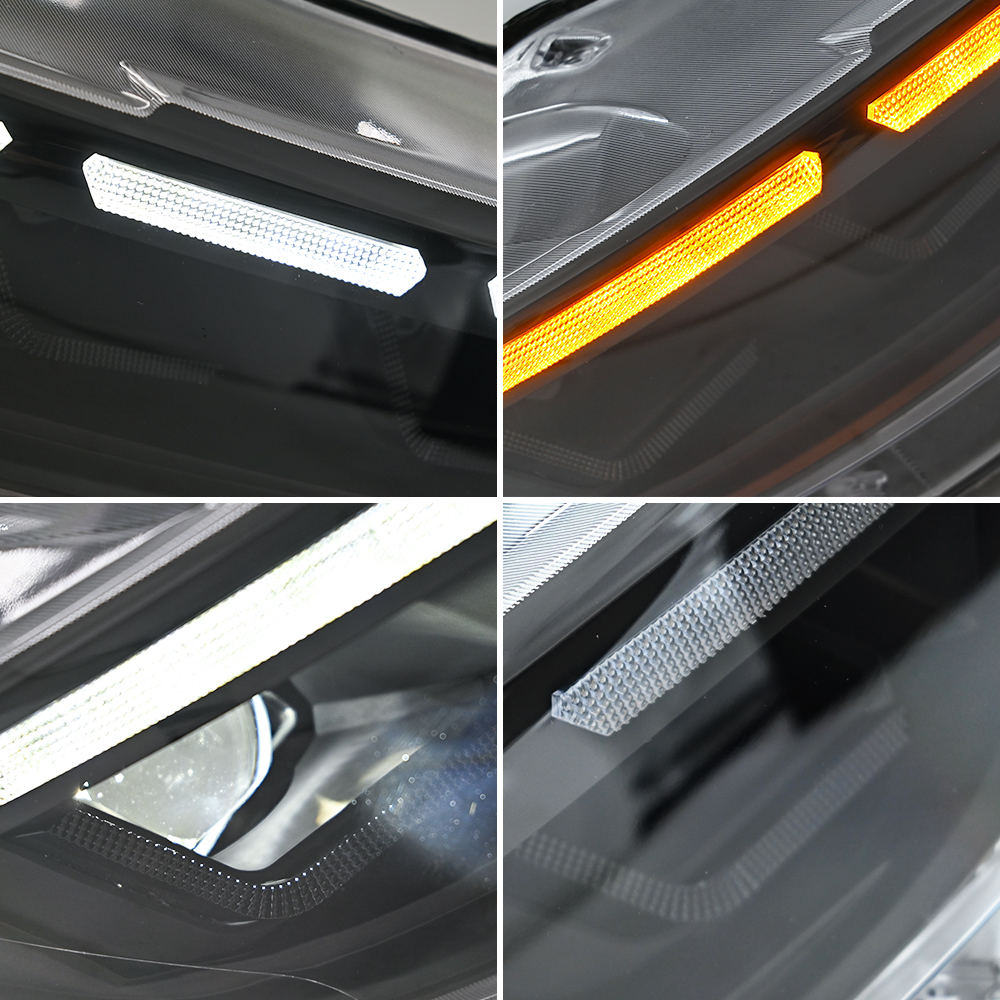 Functions: White High/Low Beam+Amber Turn Signal+White DRL+Side Light