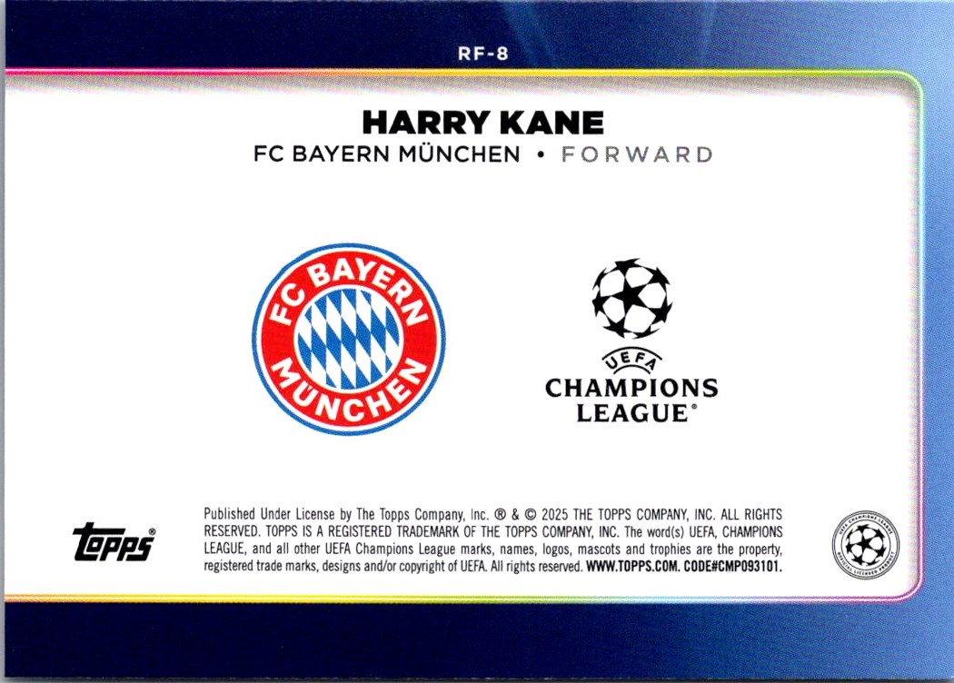 2025 Topps UEFA Champions League Harry Kane FC Bayern #RF-8