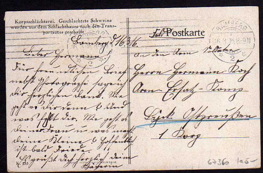 67360 AK Korpsschlächterei Schlachthof Schweine 1916