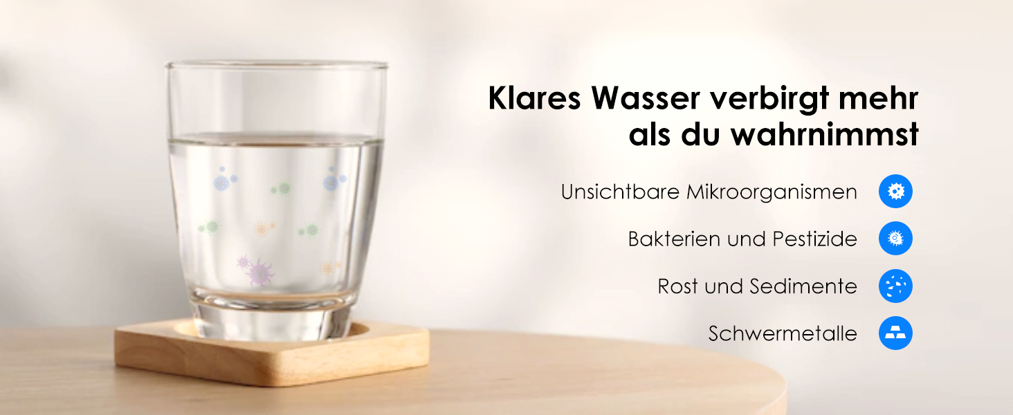 und andere potenziell schädliche Verunreinigungen im Wasser reduziert, die von einem unabhängigen Labor getestet wurden.
