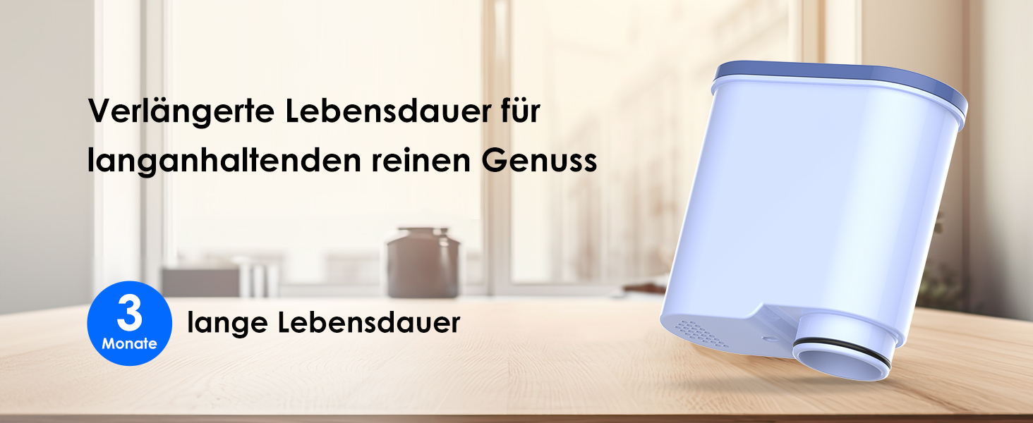 Magnesiumionen im Wasser ersetzt. Durch die Verlängerung des Wartungsintervalls Ihrer Kaffeemaschine auf 3 Monate werden auch Schwermetalle