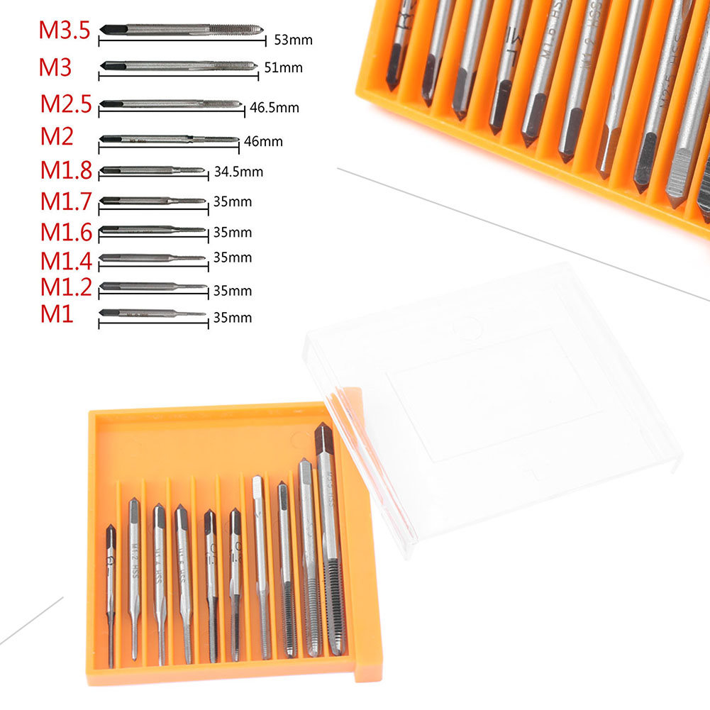 10pcs HSS Metric Right Hand Screw Thread Taper Shank Drill Set M1-M3.5