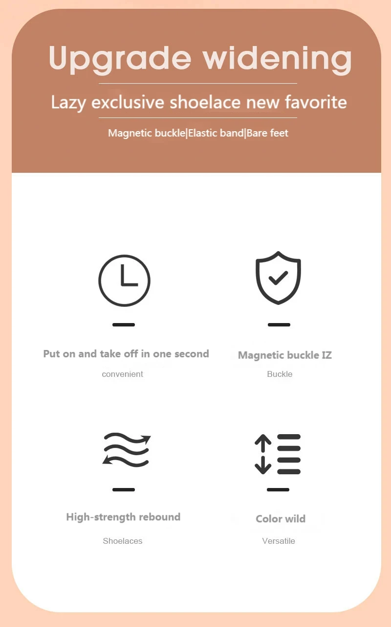Features an upgraded magnetic buckle and elastic flat laces for a secure, snug fit that stays locked in place—no more loose laces!