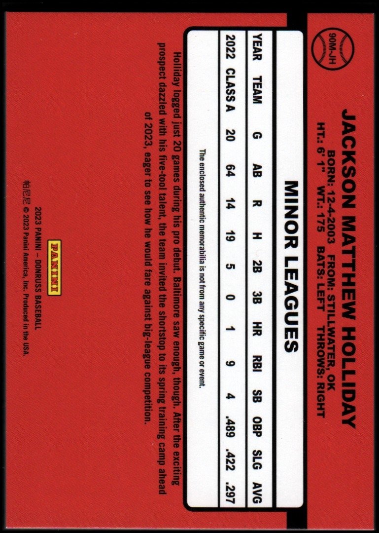 2023 Donruss Retro '90 Materials #25 Jackson Holliday - NM-MT