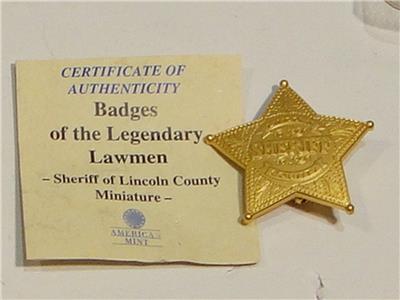 This is for a vintage American Mint Badges of the Legendary Lawmen, Sheriff of Lincoln County miniature badge. Comes with COA. For your collection.
