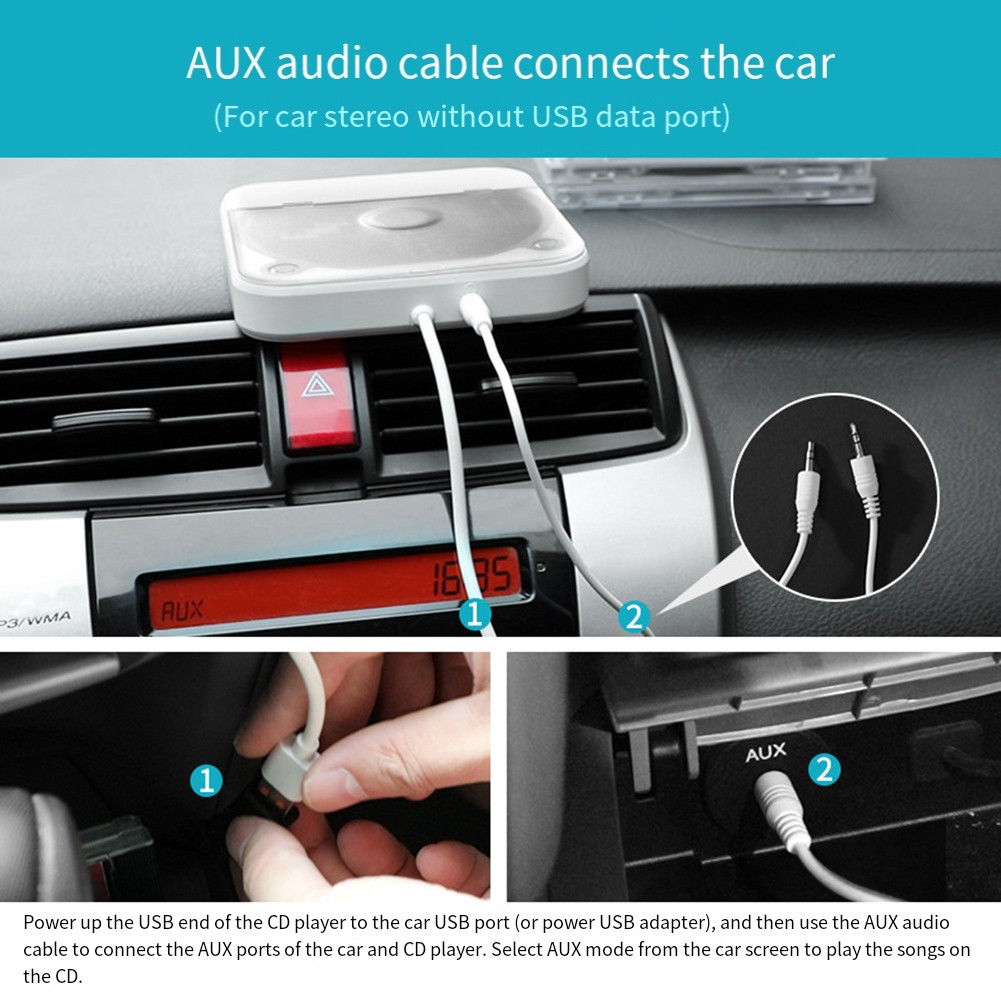 *Multiple Connectivity Options: With an AUX port and included USB extension cable, this CD player provides versatile connectivity options to suit your audio setup preferences.
