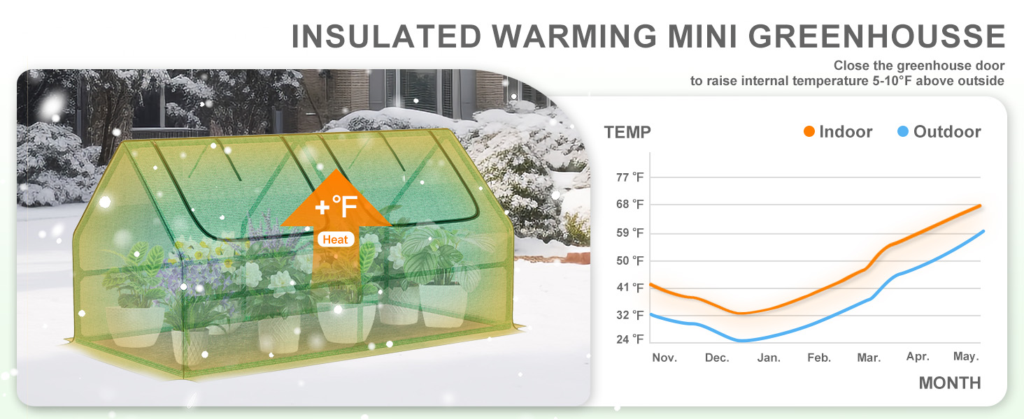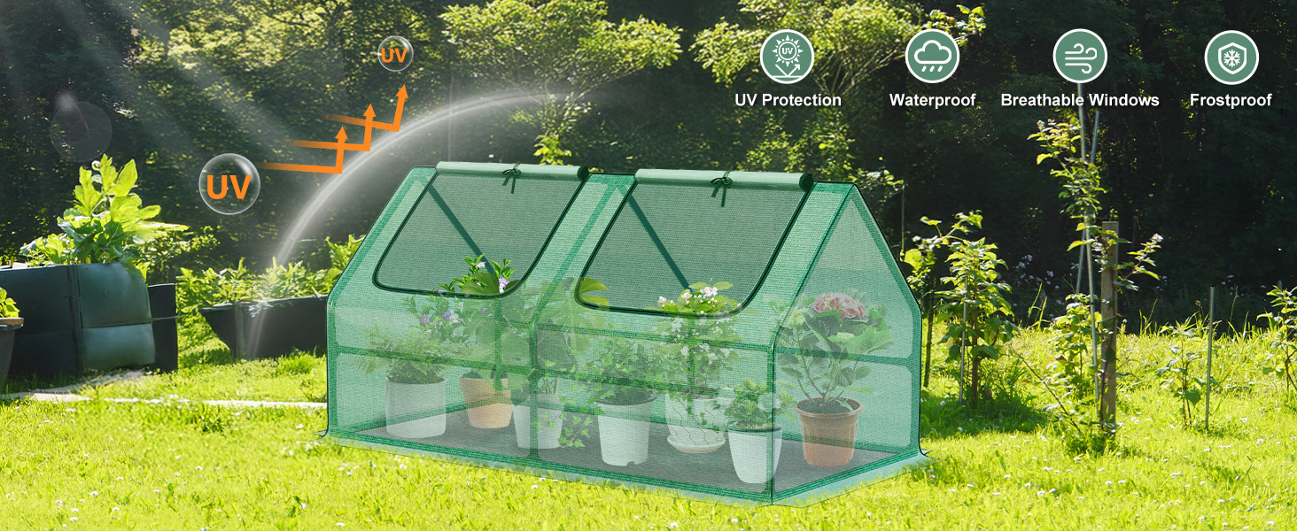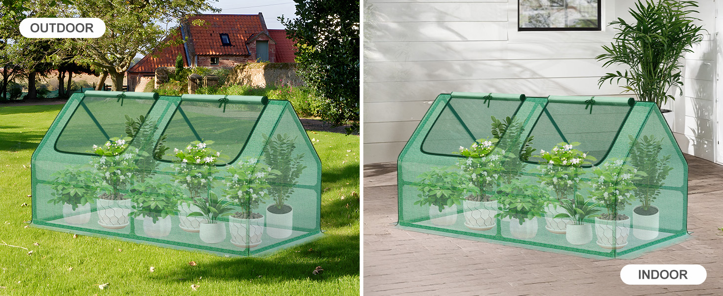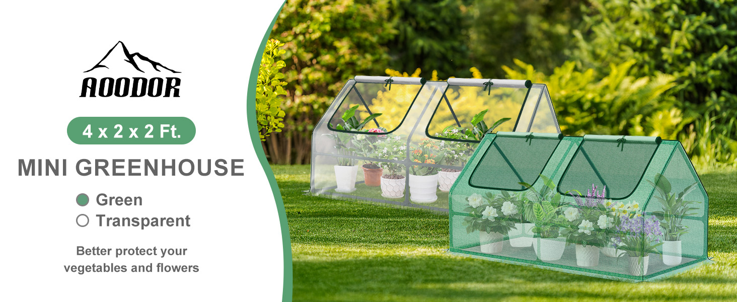 - 【PROTECTION】 - Aoodor mini greenhouse helps to protect plants, seeds, vegetables, herbs, flowers and extend the growing season. The greenhouse, with durable PE material cover, is UV protected and waterproof which creates an ideal environment for planting in various weather conditions. The greenhouse can be used in the garden as well as balconies and other areas of a home.