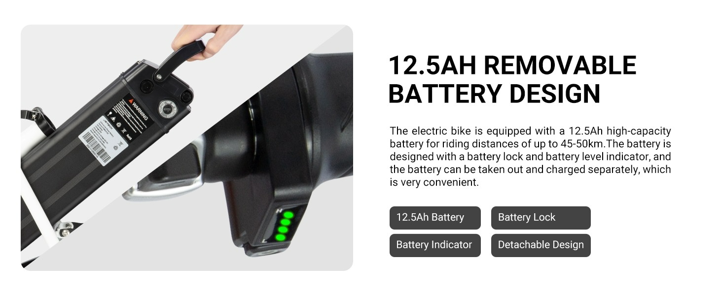 Die Höchstgeschwindigkeit beträgt 25 km/h, die Batteriekapazität 12,5 Ah und die maximale Laufleistung im Power-Assist-Modus kann 50 km erreichen