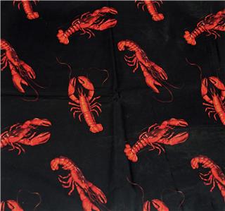 VTG (I believe) Robert Kaufman Bayshore Collection Bright Red Lobsters Black Cotton Fabric. Crisp, clear graphics. Measures 44" wide. BTY. Nice quality fabric. OUT OF PRINT. I do have a little extra (under a yard), if you need more I can prorate it.