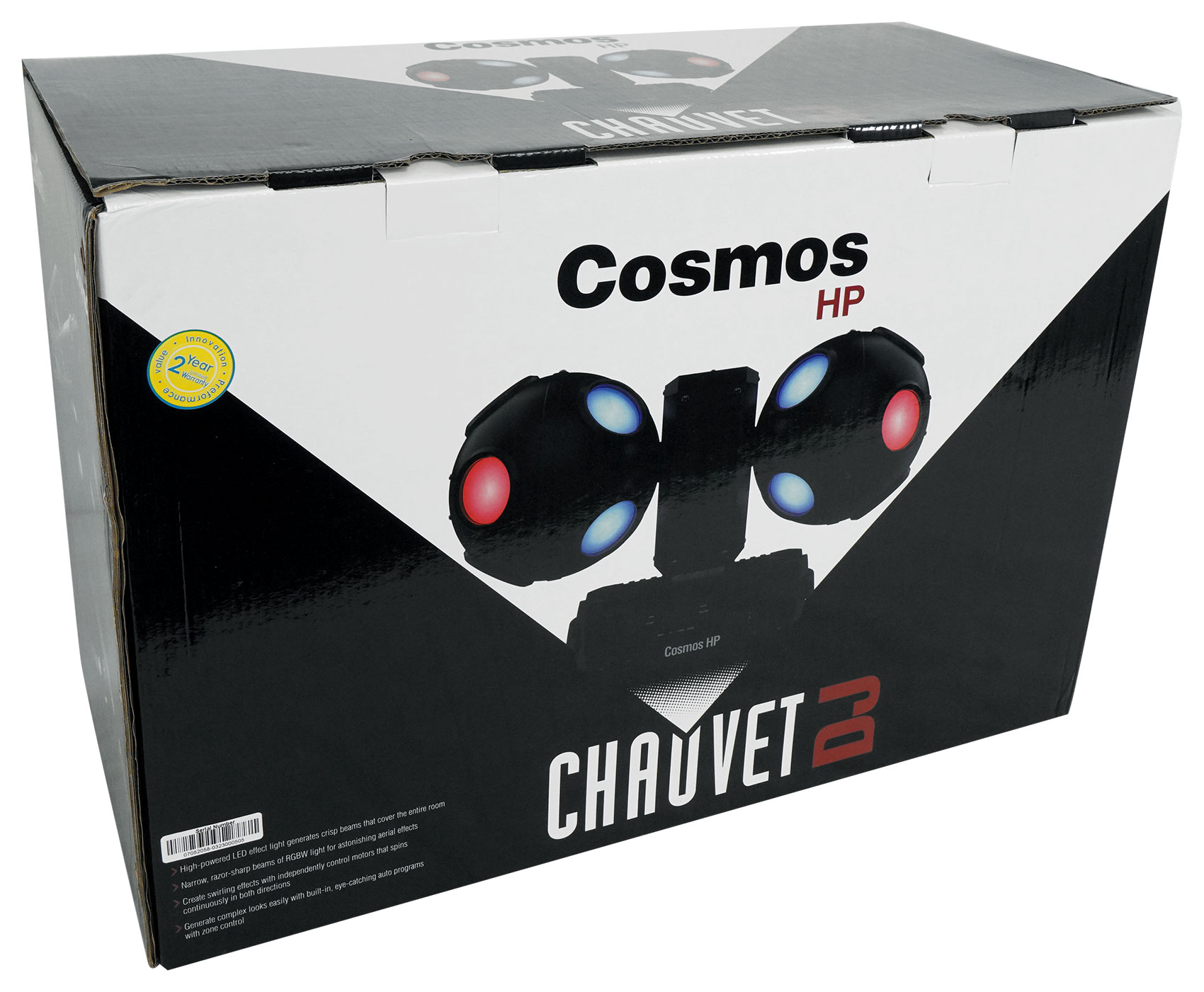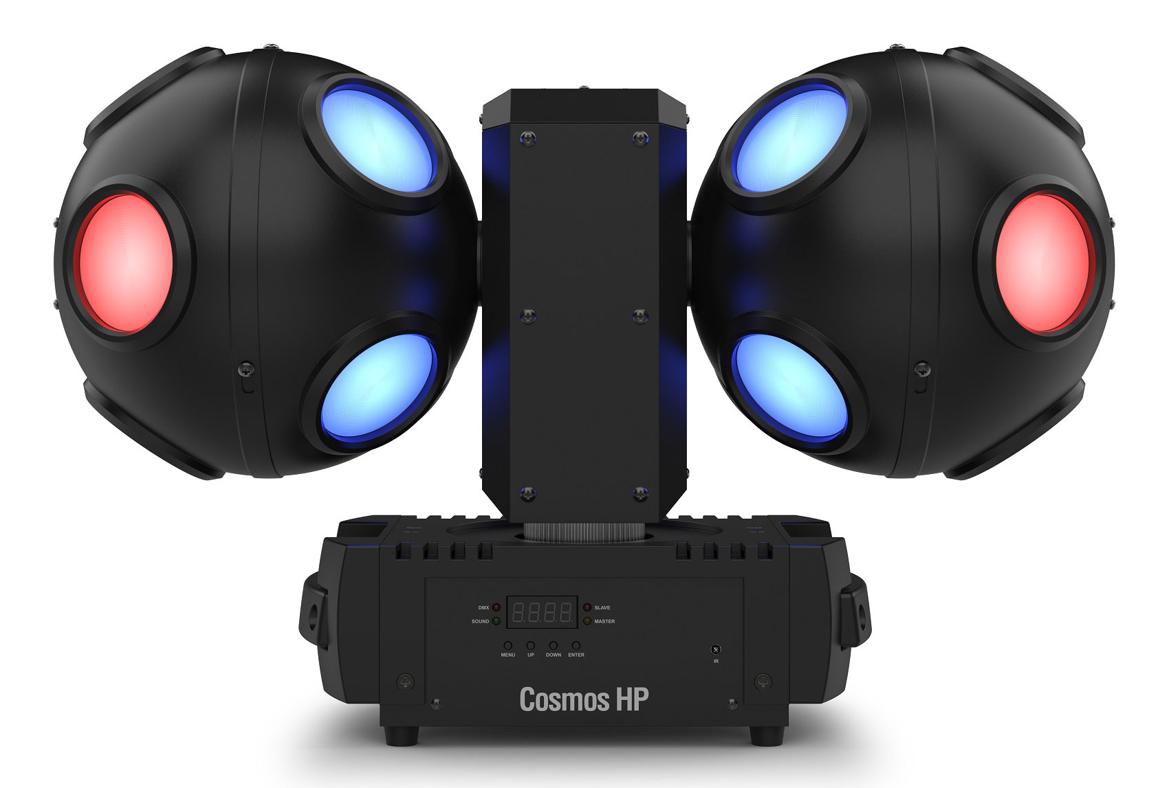 Blast into a whole new universe of dance floor energy with Cosmos HP, a high-powered LED effect light that generates breathtaking razor-sharp beams of RGBW light for astonishing aerial effects that cover the entire room and look amazing with or without haze. Independently controlled motors spin two LED filled balls continuously in different directions creating stunning swirling effects. Generate complex looks easily with built-in, eye-catching auto programs with zone control and use an optional IRC-6 wireless remote for convenient, wireless control.