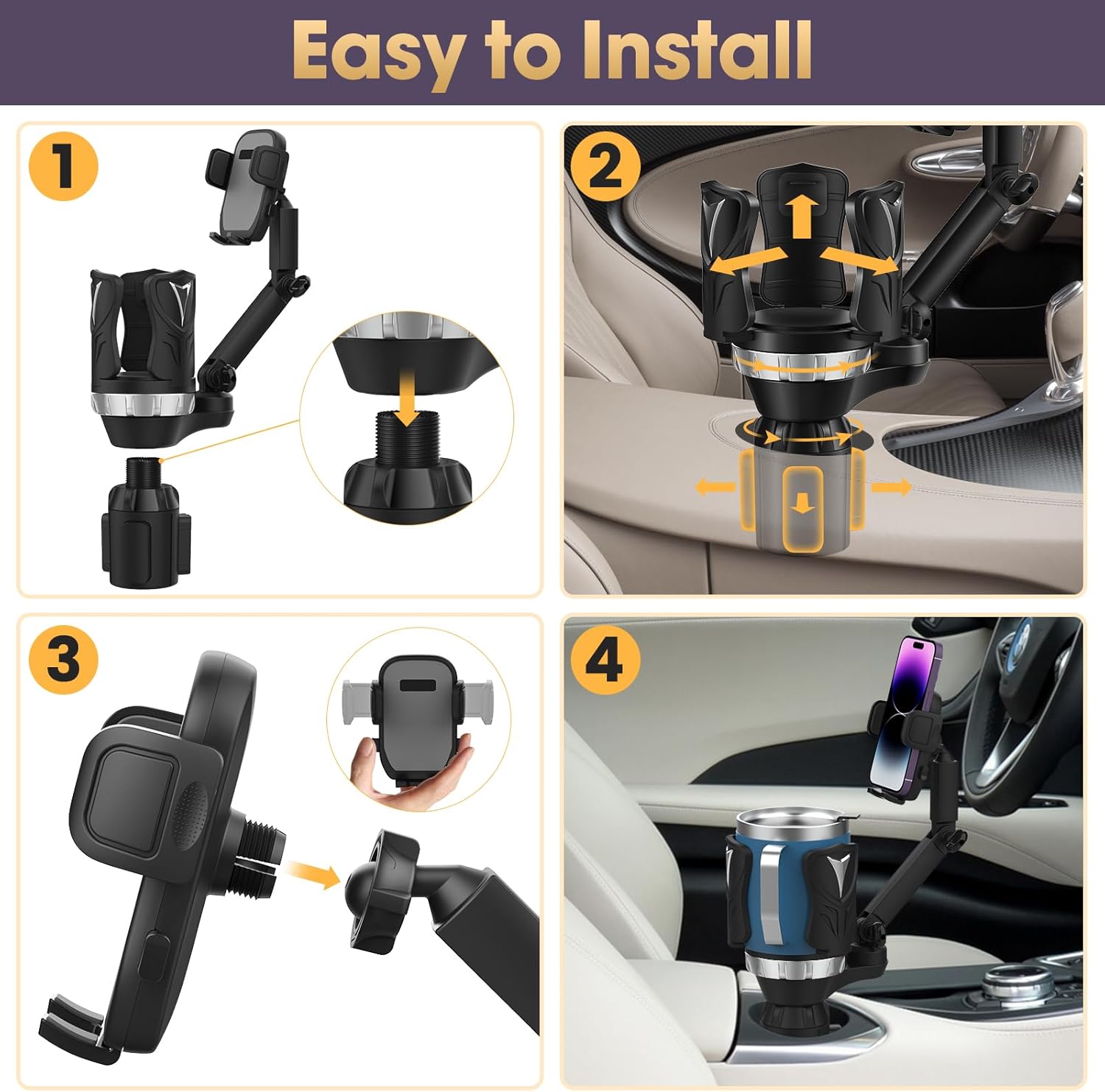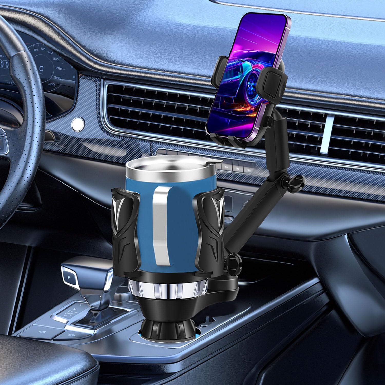 Maximize limited car space by combining a cup holder and phone mount in one unit—great for commuting, rideshare, or road trips.