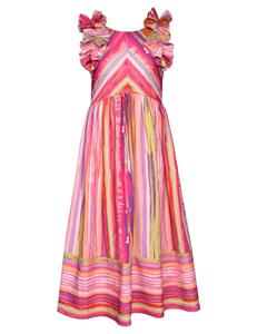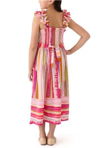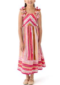 NEW Girls "PINK-MULTI STRIPE" Ruffle Maxi Dress Size 8