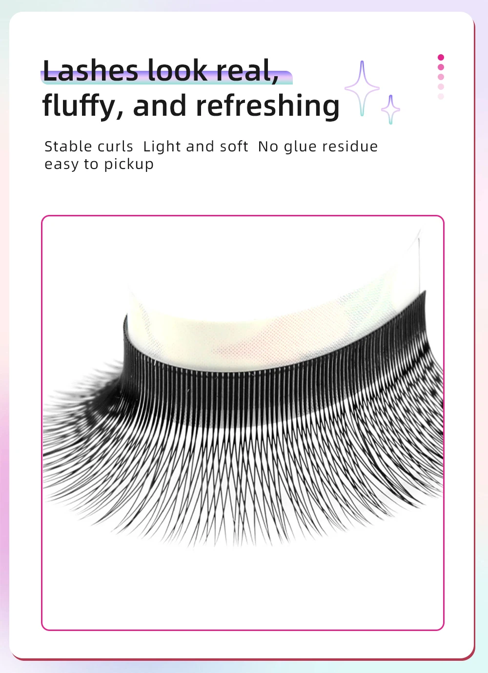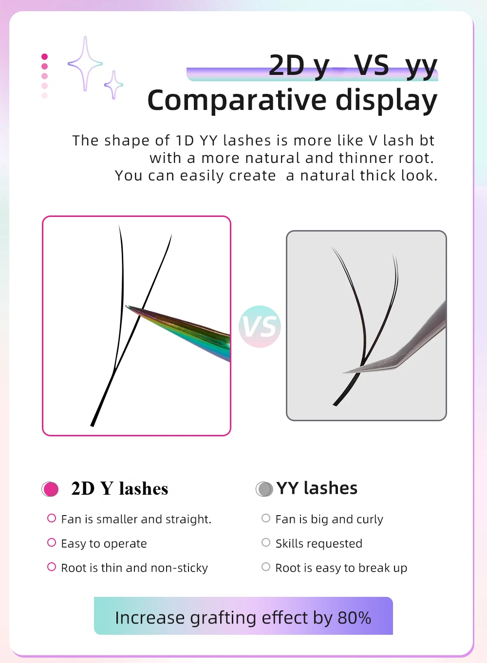 4.One Lash, Multiple Effects: We offer a variety of lengths, curls, and thicknesses in our Y lashes, allowing you to customize the effect based on your customer's specifics. Whether they are seeking a natural effect or a dramatic one, we can meet their needs.