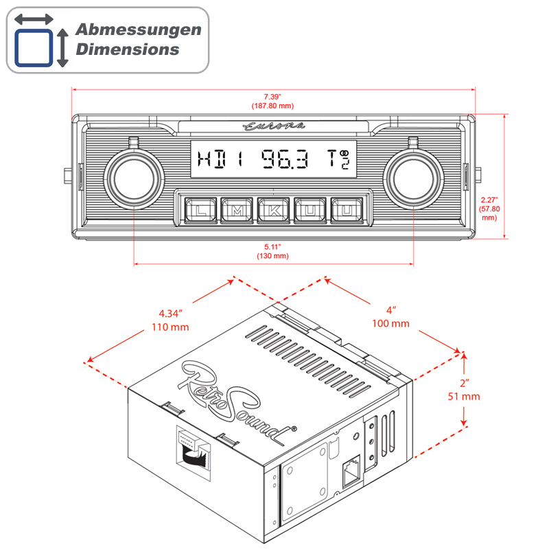 Das Herzstück eines Retroradios ist das Radiomodul. Es gibt verschiedene Radiomodule zur Auswahl, die unterschiedliche Funktionen und Anforderungen erfüllen. Außerdem eine Displayeinheit in verschiedenen Designs und Abmessungen. Bevor Sie eine Displayeinheit auswählen, sollten Sie sicherstellen, dass es mit dem Radioausschnitt und dem Design Ihres Autos kompatibel ist.