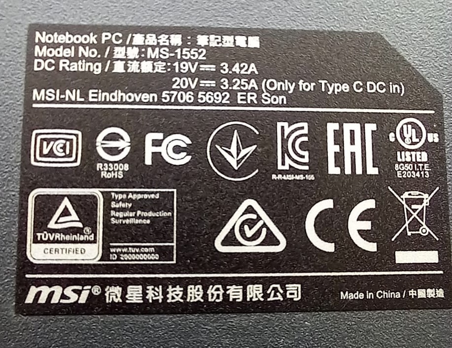 MSI Modern 15 A11Mu MS-1552 Bottom Case Untere Abdeckung 307-55LDA11-TA2-B -